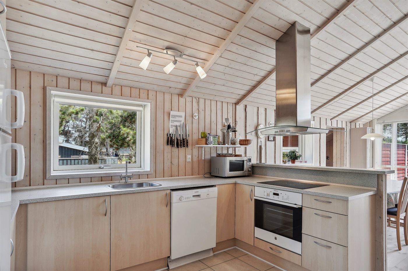 Køkkenet er udstyret med 1 køleskab. Der er 4 induktionskogeplader, varmluftovn, mikrobølgeovn samt opvaskemaskine.