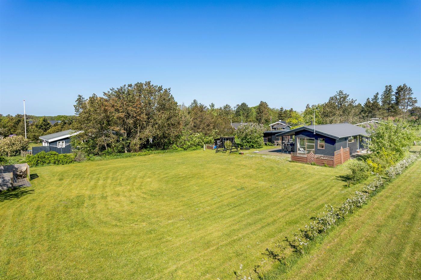 Ferieboligen er beliggende på en 1600 m² stor havegrund. Der er 450 m til havet. Nærmeste forretning er beliggende i en afstand af 5500 m. Til ferieboligen hører åbent terrasseareal. Desuden er der overdækket terrasse. Gynge. Sandkasse. Grill til rådighed. Parkering ved ferieboligen.
