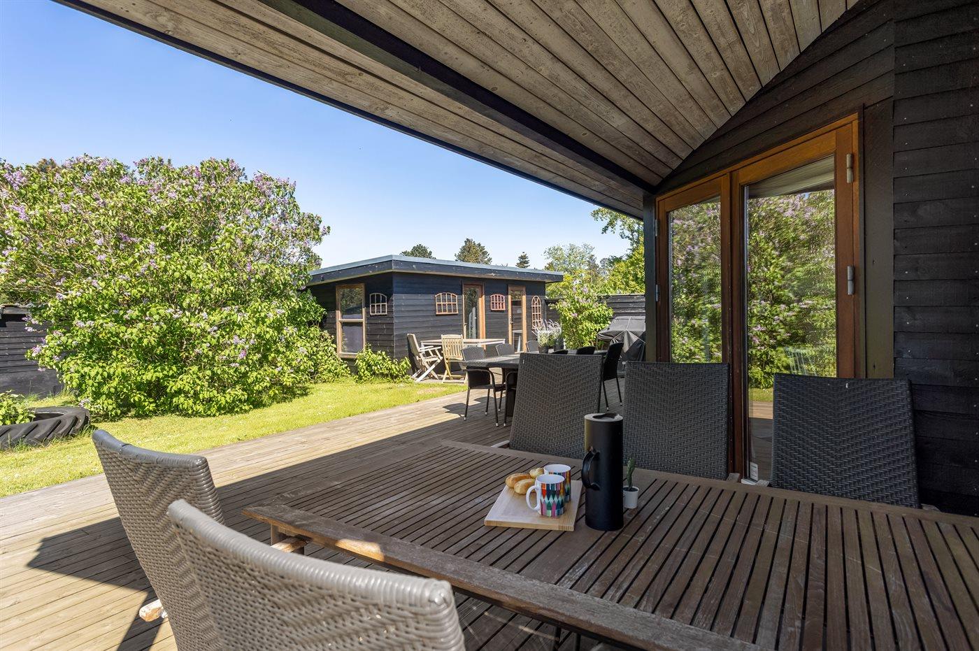 Et hyggeligt sommerhus tæt ved en skøn og meget børnevenlig sandstrand. Sommerhuset ligger på en dejlig grund, hvor du har mulighed for at kunne opholde dig helt privat på den til dels overdækkede terrasse.