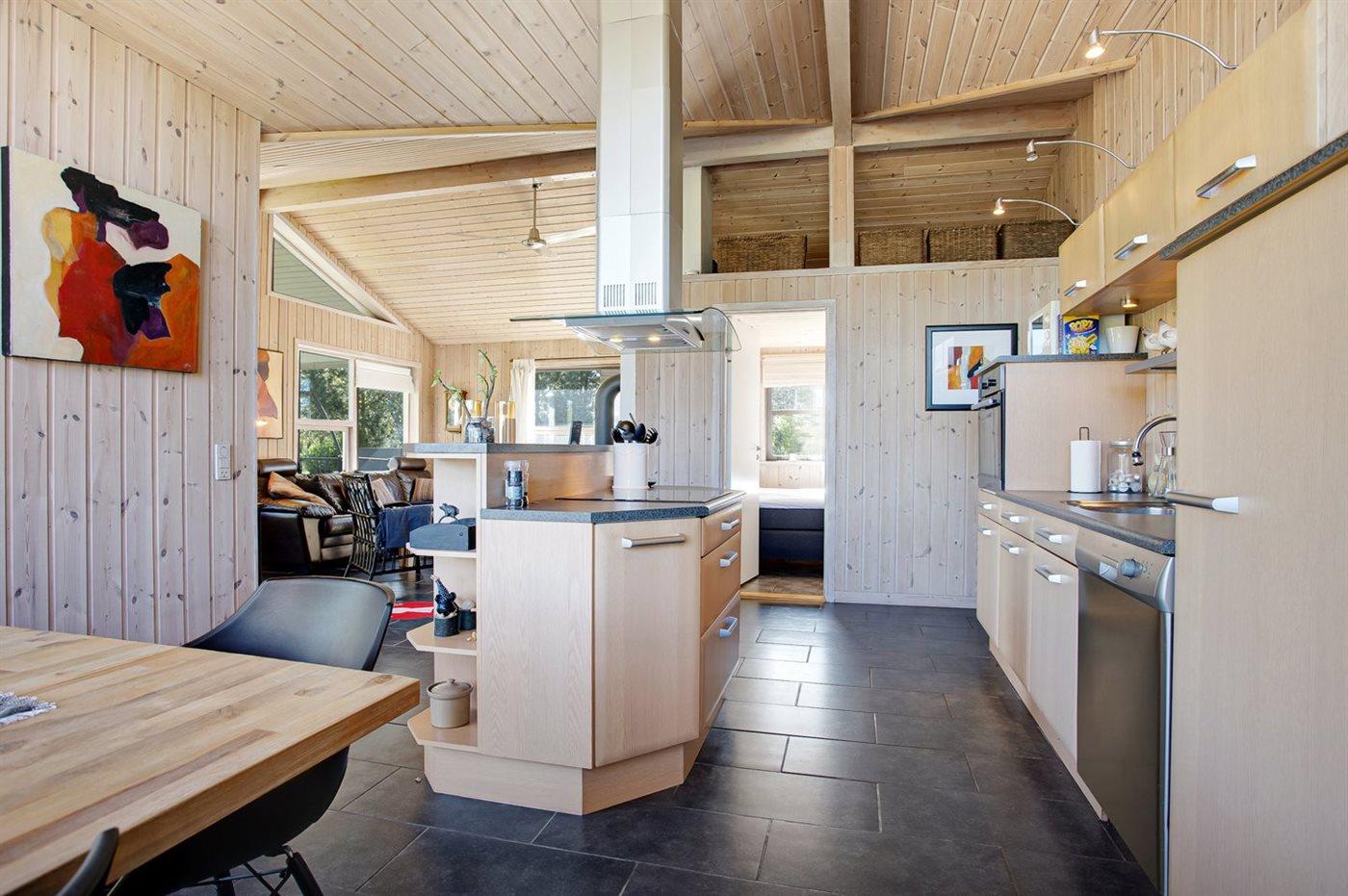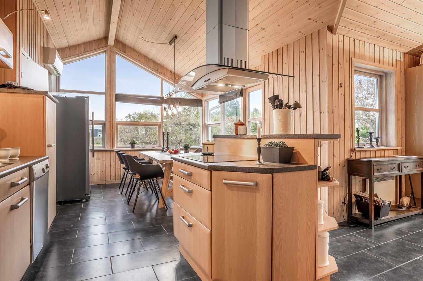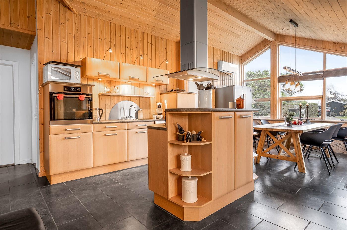 Køkkenet er udstyret med 1 køleskab. Der er 4 induktionskogeplader, varmluftovn, mikrobølgeovn samt opvaskemaskine.