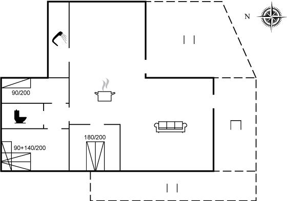 Der er i alt 3 soveværelser. Sovepladserne fordeler sig på: 4 sovepladser i dobbeltsenge. 1 soveplads i enkeltseng.1 soveplads i køjeseng.