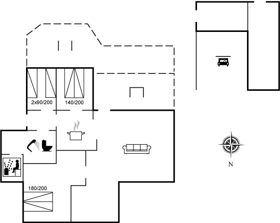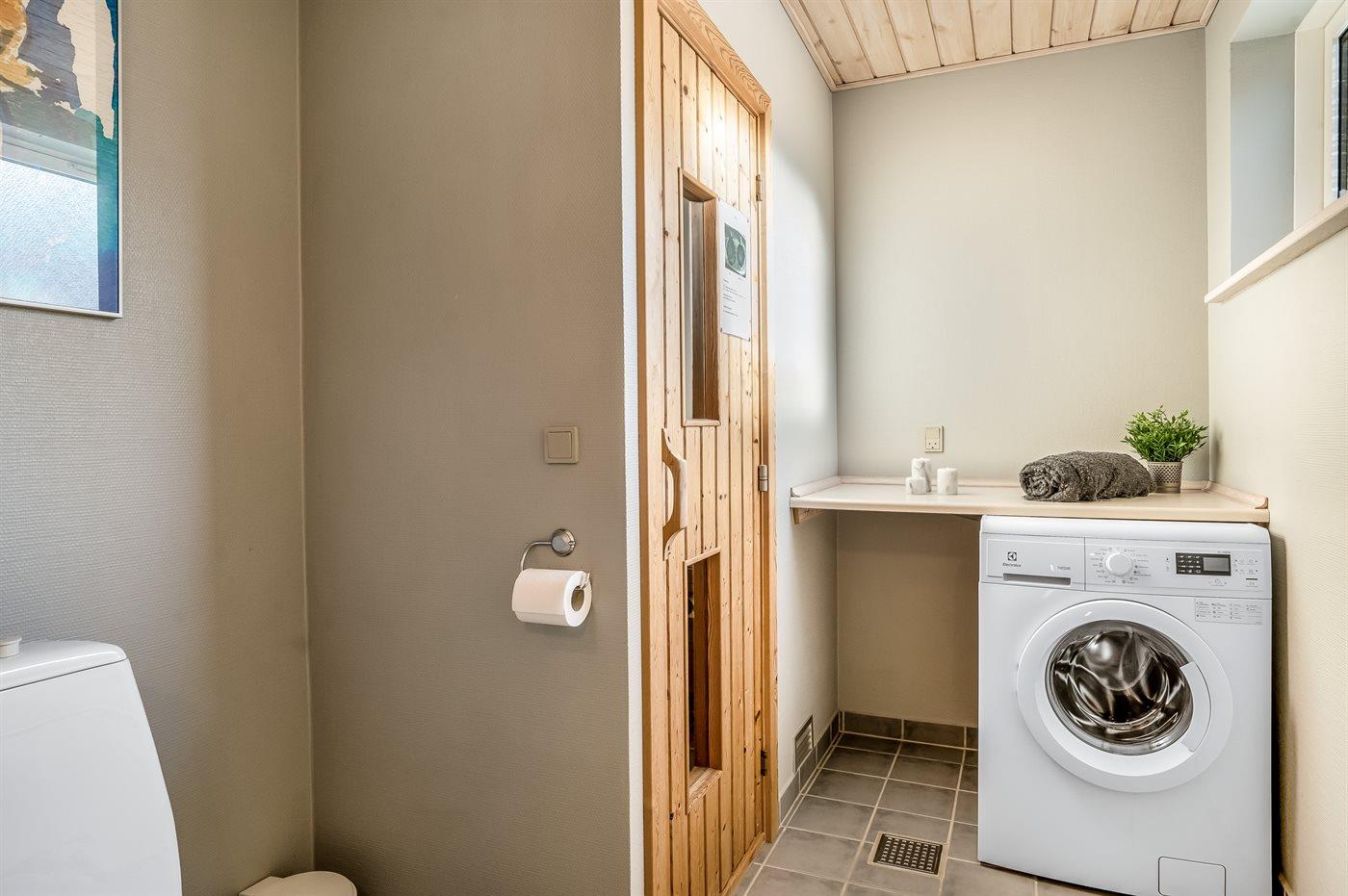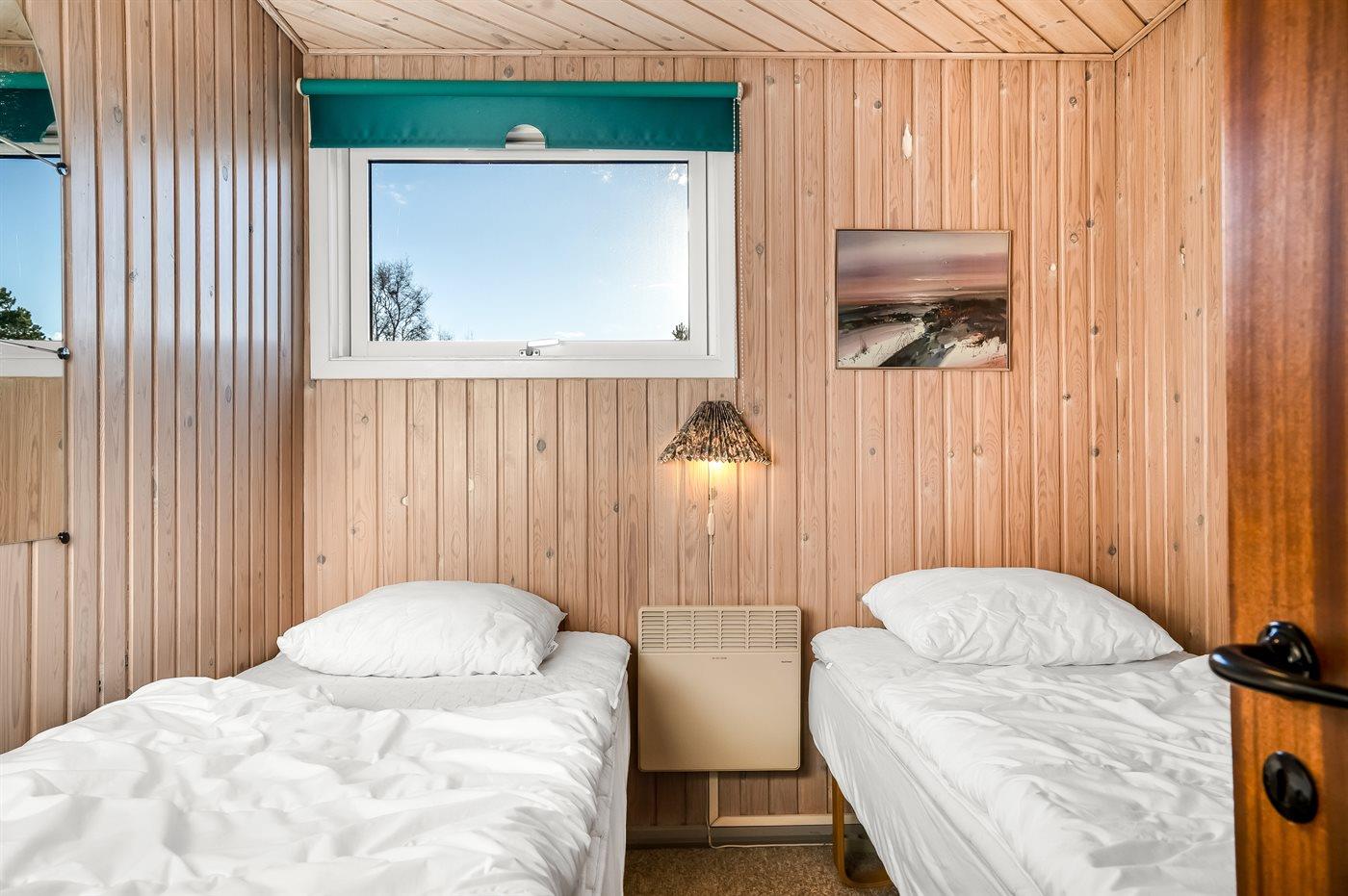 Huset har 3 soveværelser: 2 værelser med dobbeltsenge og et værelse med 2 enkeltsenge. Til de mindste er der både puslebord, højstol og barneseng. Badeværelset er indrettet med bruseniche, vaskemaskine og en sauna, hvor I kan koble af og nyde lidt ekstra wellness under opholdet.