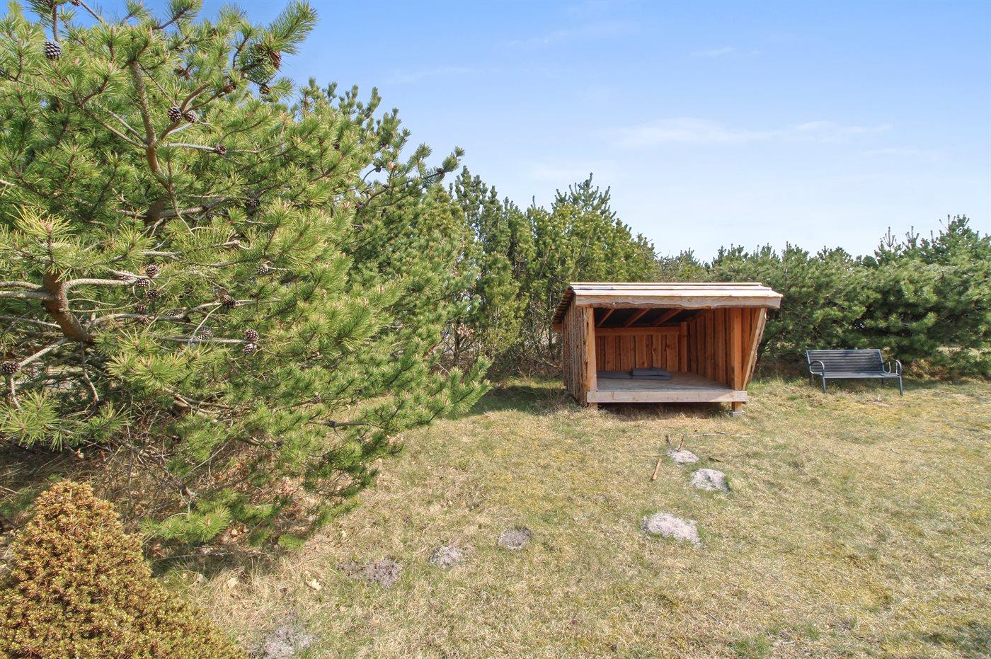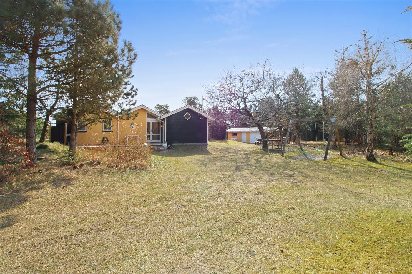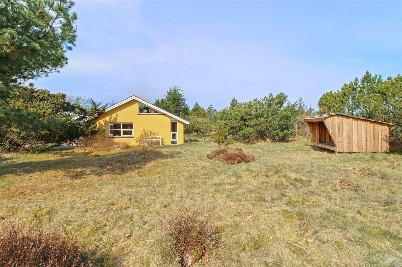 Ferieboligen er beliggende på en 2400 m² stor naturgrund. Der er 175 m til havet. Nærmeste forretning er beliggende i en afstand af 8000 m. Til ferieboligen hører 55 m² terrasseareal. Der er redskabsrum. Gynge. Sandkasse. Bålsted. Shelter til 2 voksne,2 børn Grill til rådighed. Parkering ved ferieboligen.