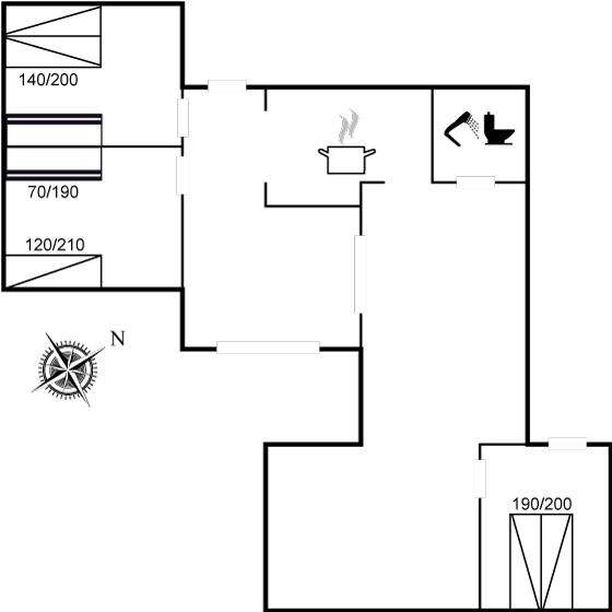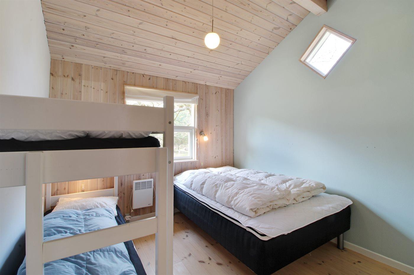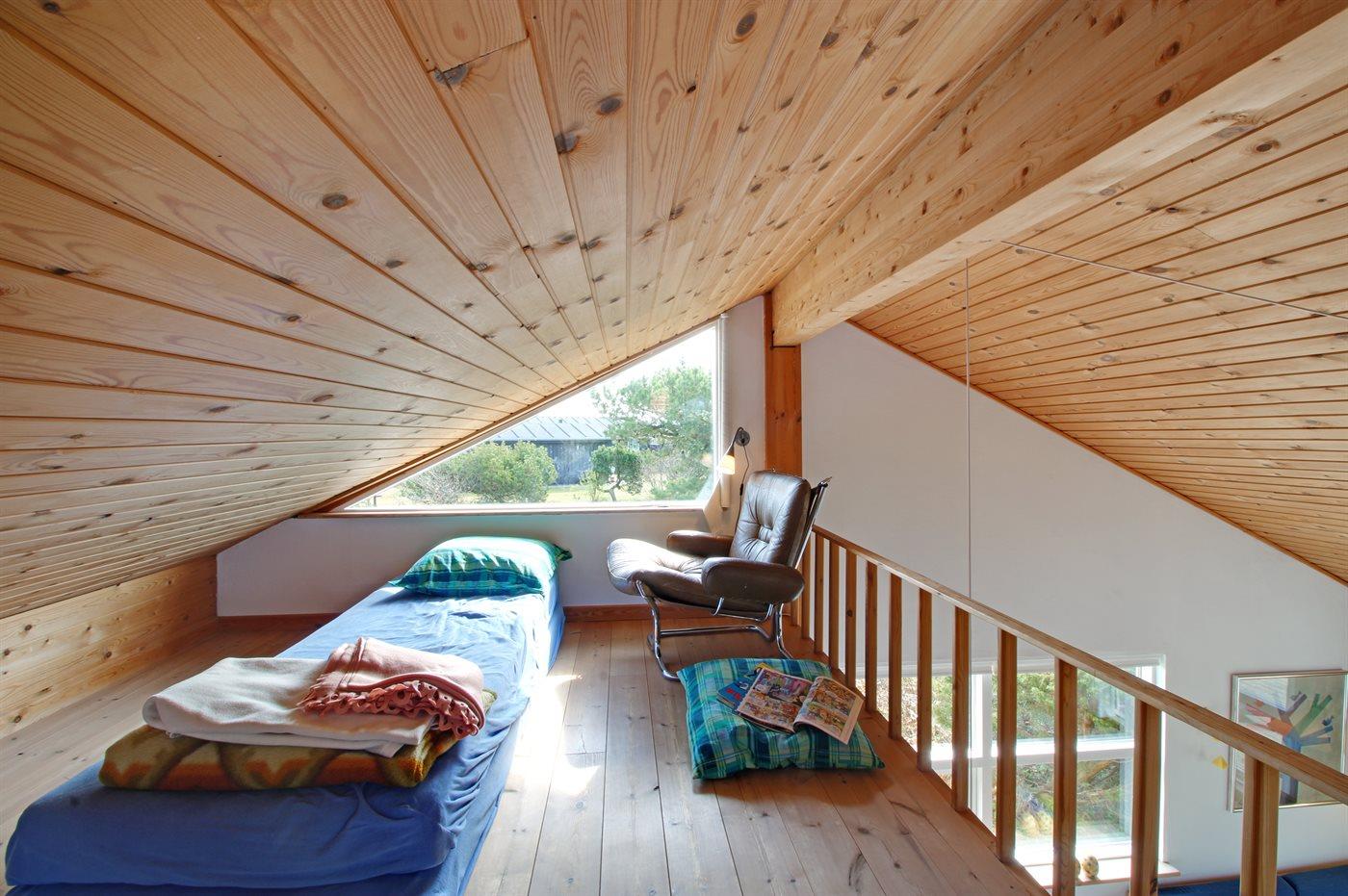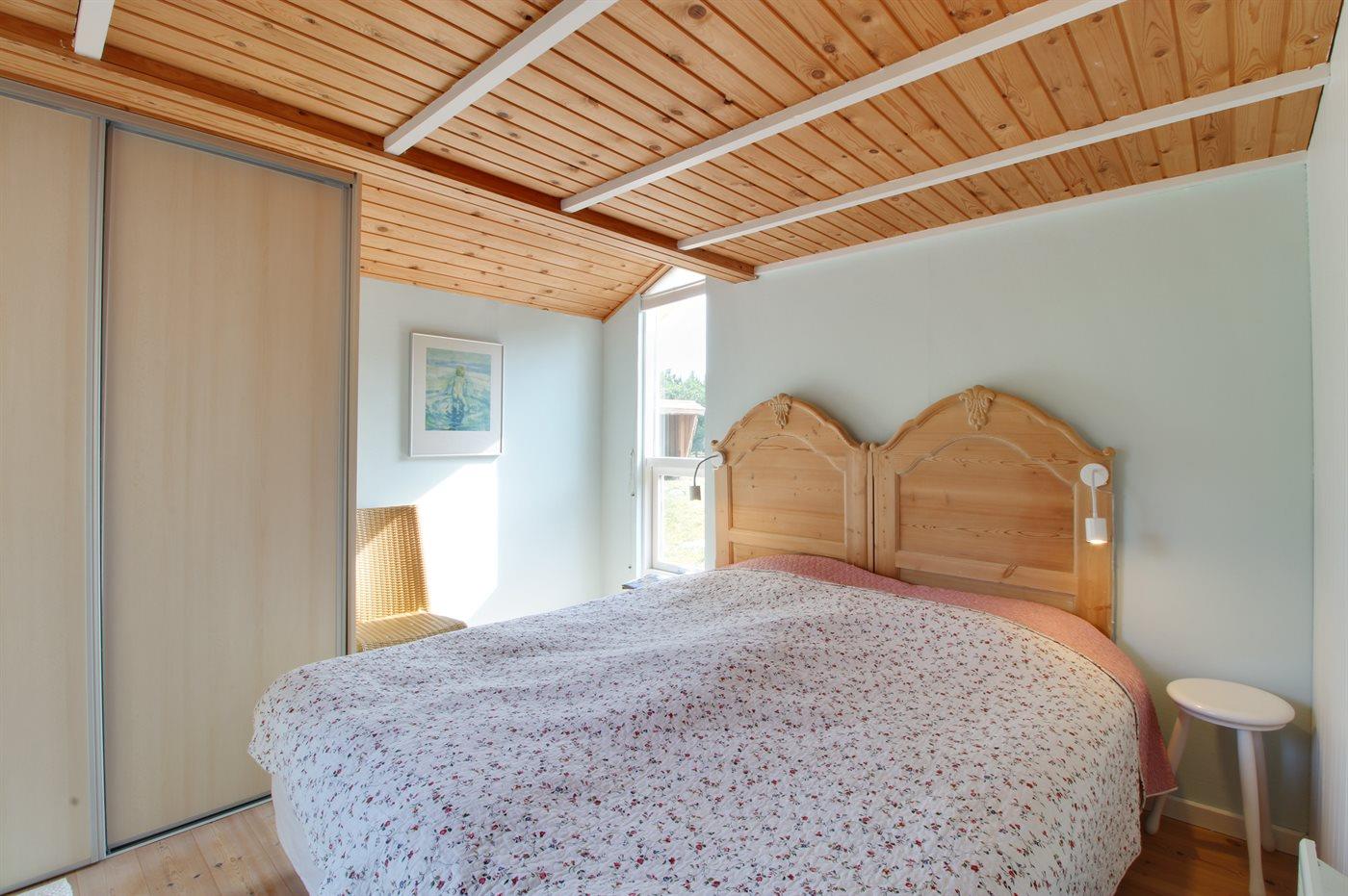 Der er i alt 3 soveværelser. Sovepladserne fordeler sig på: 2 sovepladser i dobbeltseng. 3 sovepladser i enkeltsenge. 2 sovepladser i køjeseng. 2 sovepladser på madrasser. 2 af disse sovepladser befinder sig på husets hems. Derudover er der 1 stk. barneseng.