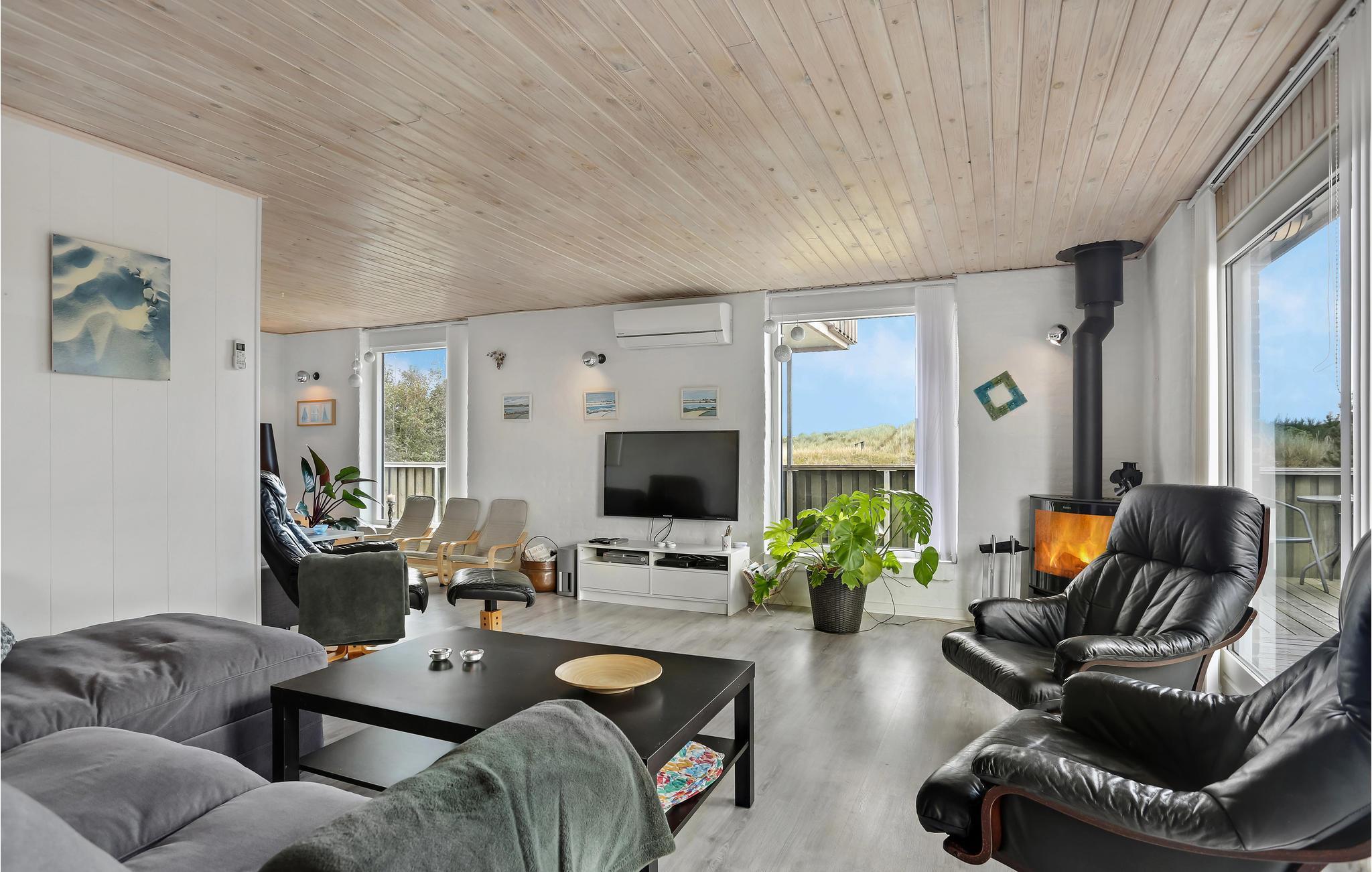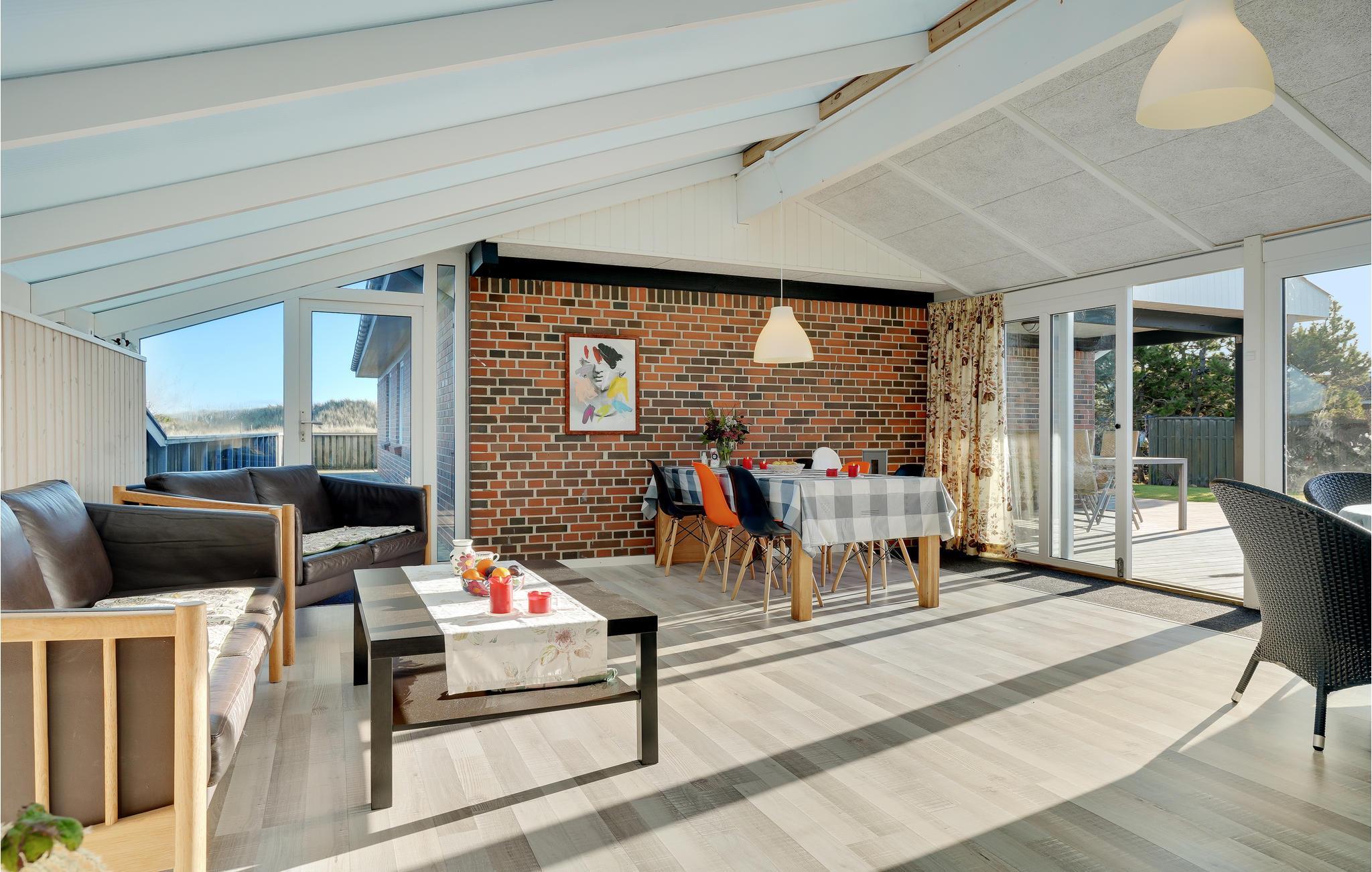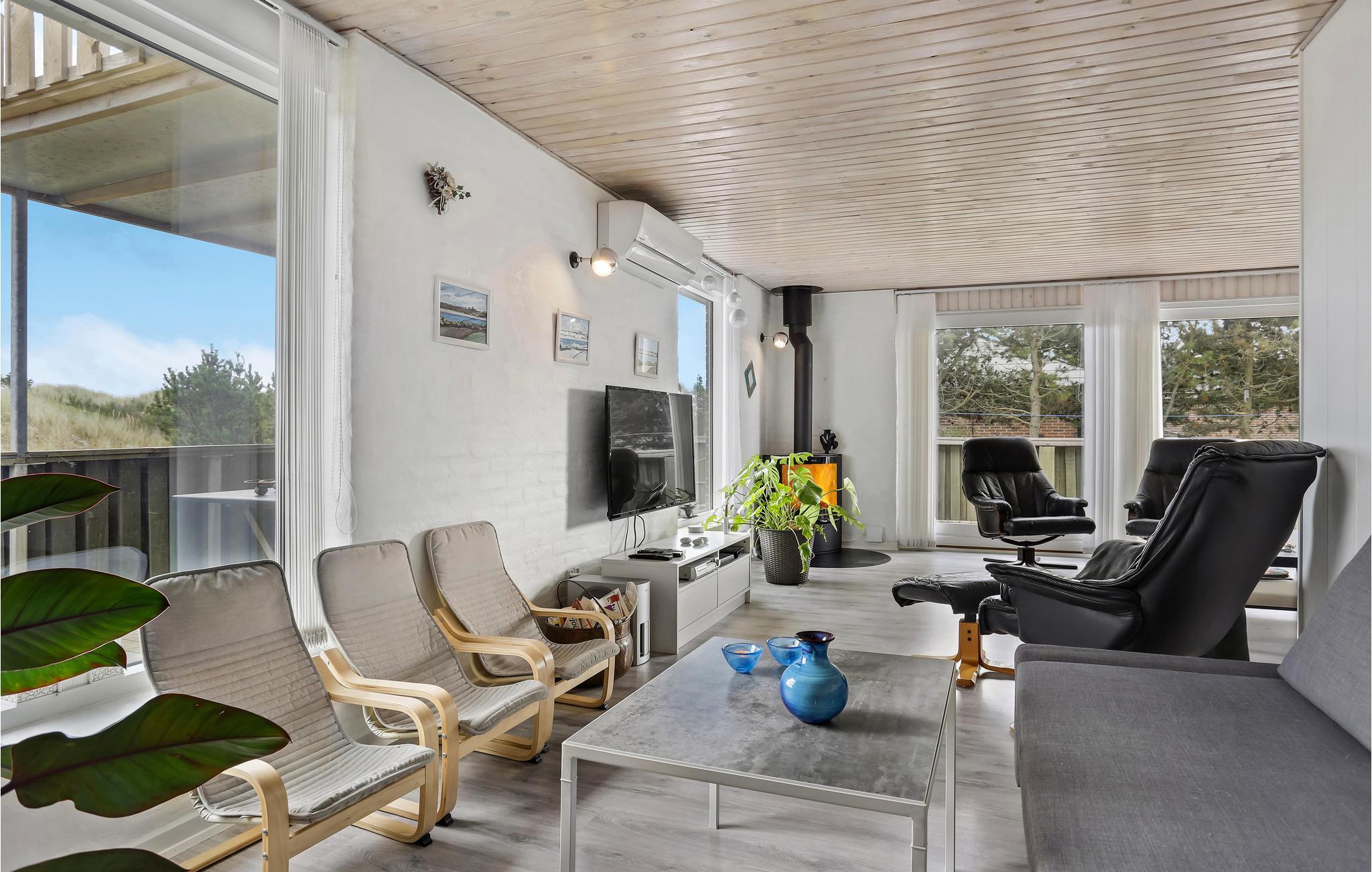 I yderste klitrække med en flot havudsigt ligger dette dejlige og flot renoverede feriehus. Huset fremtræder lyst og indbydende og fra stuen har I den flotteste udsigt over klitterne. Det store aktivitetsrum indbyder til mange timers underholdning og leg for både børn og voksne. I huset findes to varmepumper således at både huset og det store aktivitetsrum opvarmes energirigtigt. Huset har skønne terrasser med gode læforhold. Grunden er flot kuperet og herfra er der den skønnese udsigt over Kattegat. Fra huset er der kort kørselsafstand til den hyggelige gamle by Sæby med en spændende gammel bydel og en aktiv havn med gode restaurenter.
