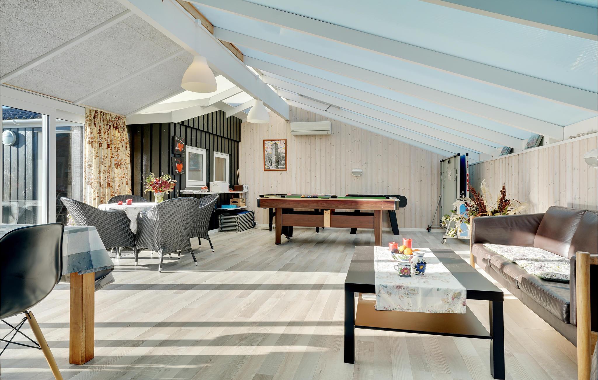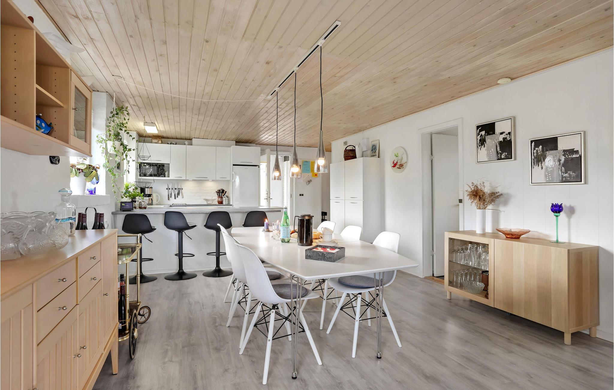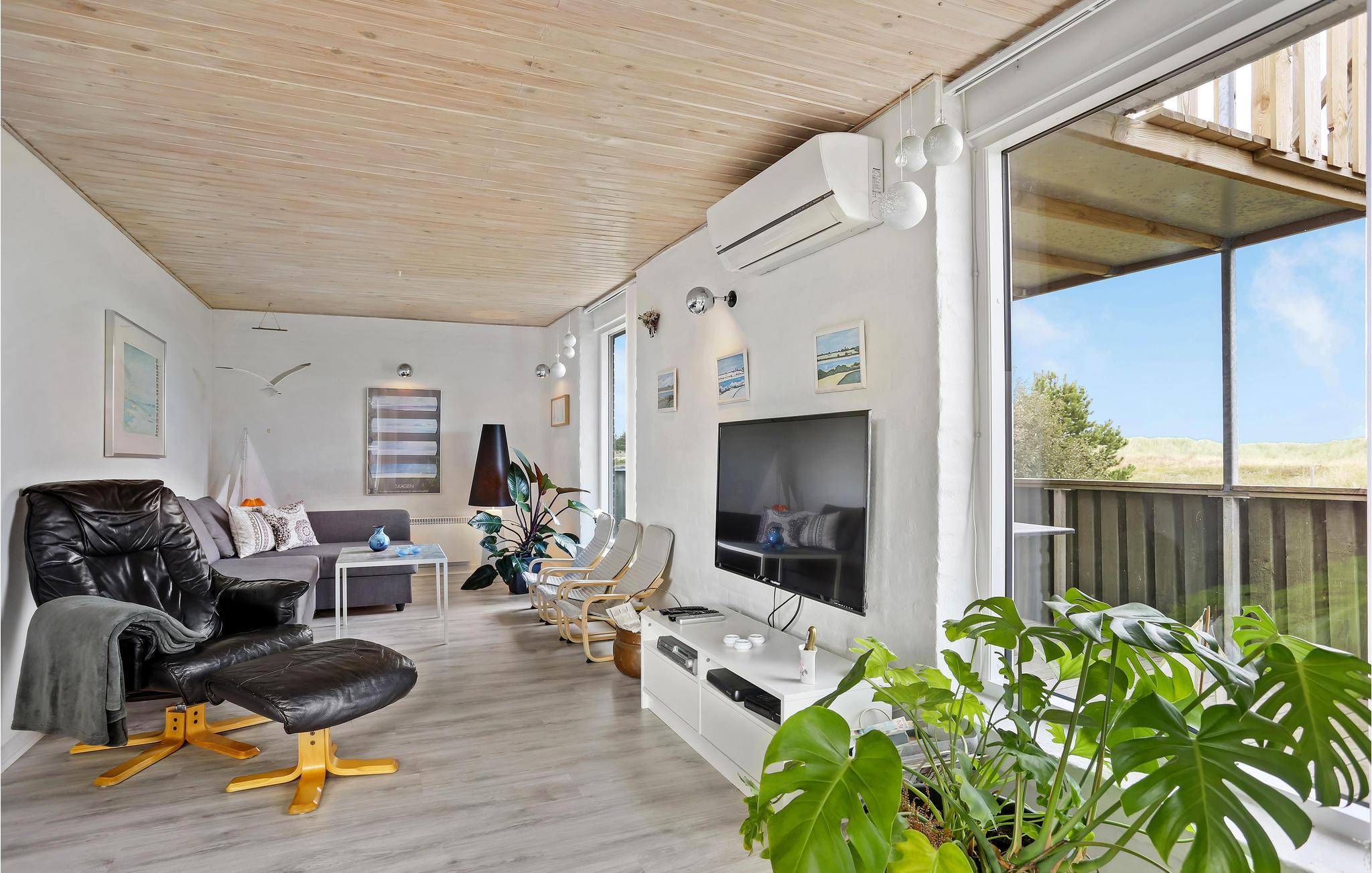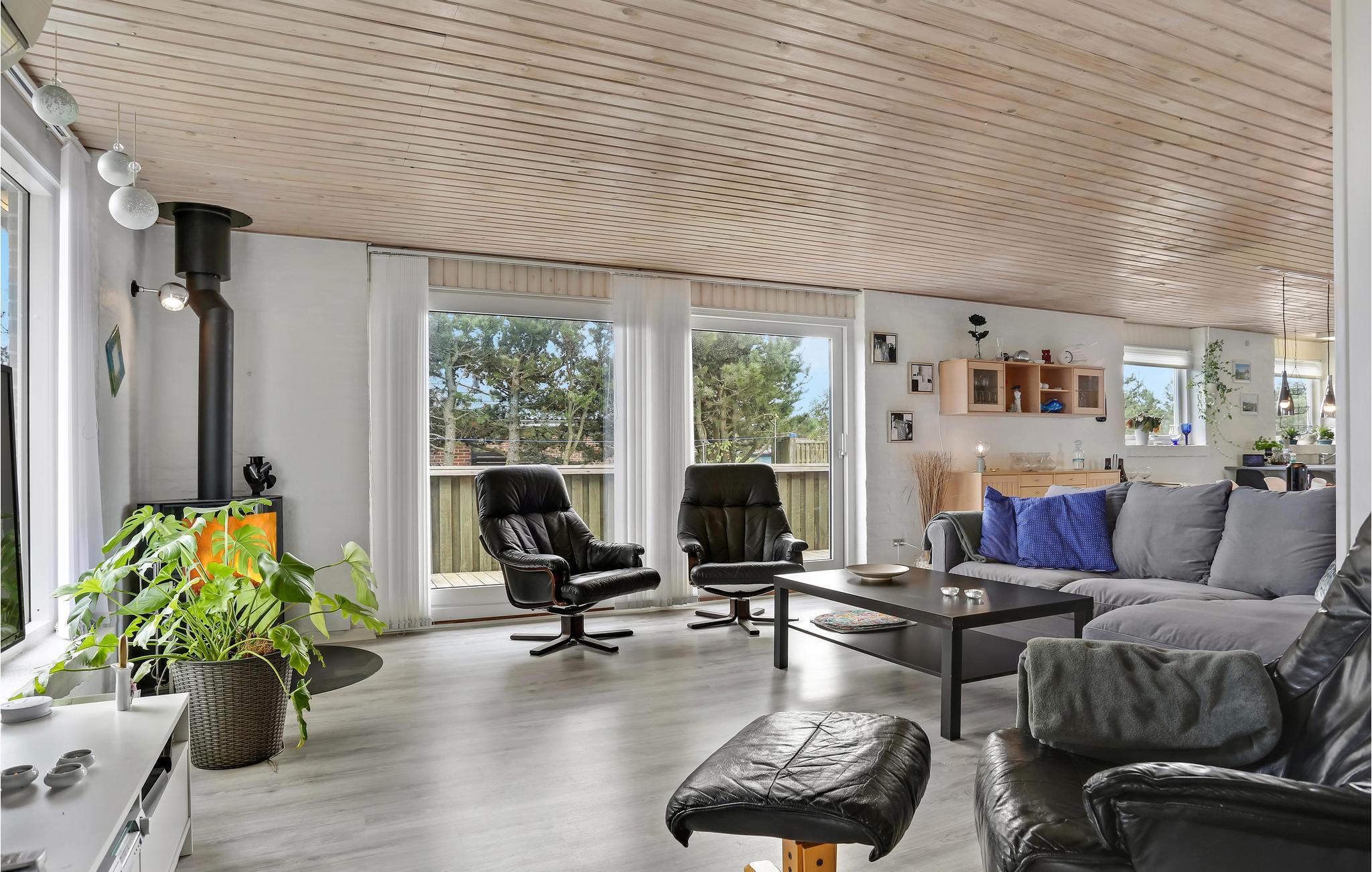 I yderste klitrække med en flot havudsigt ligger dette dejlige og flot renoverede feriehus. Huset fremtræder lyst og indbydende og fra stuen har I den flotteste udsigt over klitterne. Det store aktivitetsrum indbyder til mange timers underholdning og leg for både børn og voksne. I huset findes to varmepumper således at både huset og det store aktivitetsrum opvarmes energirigtigt. Huset har skønne terrasser med gode læforhold. Grunden er flot kuperet og herfra er der den skønnese udsigt over Kattegat. Fra huset er der kort kørselsafstand til den hyggelige gamle by Sæby med en spændende gammel bydel og en aktiv havn med gode restaurenter.