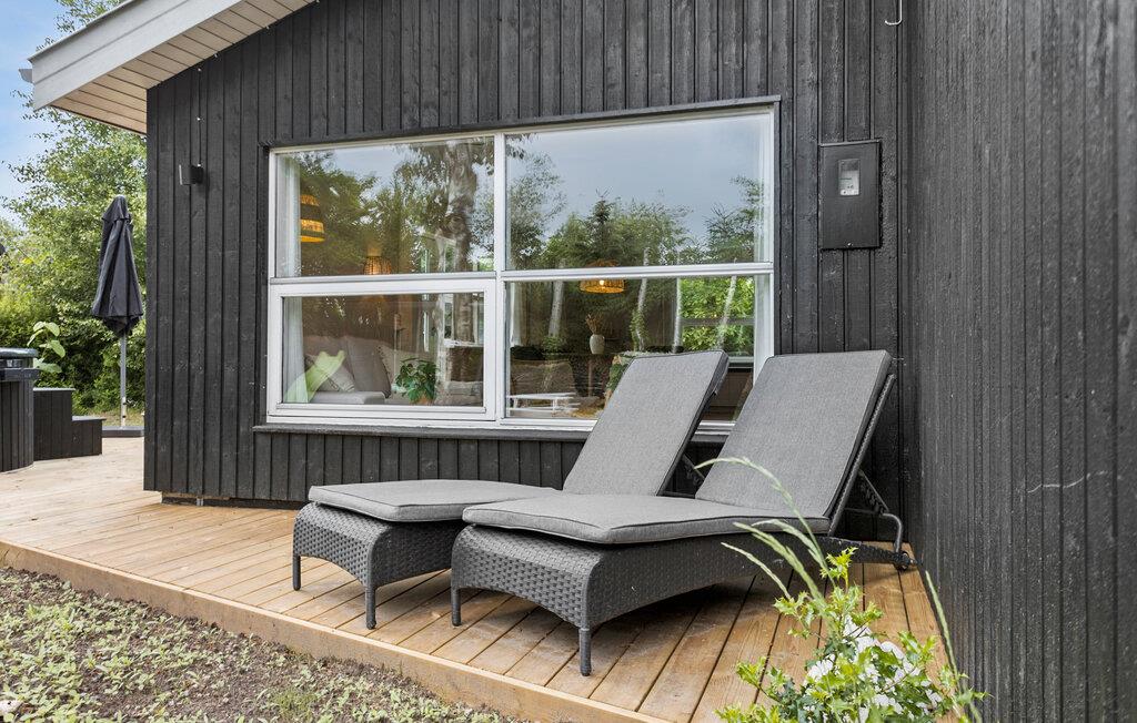 Hyggeligt træhus med vildmarksbad nær strand