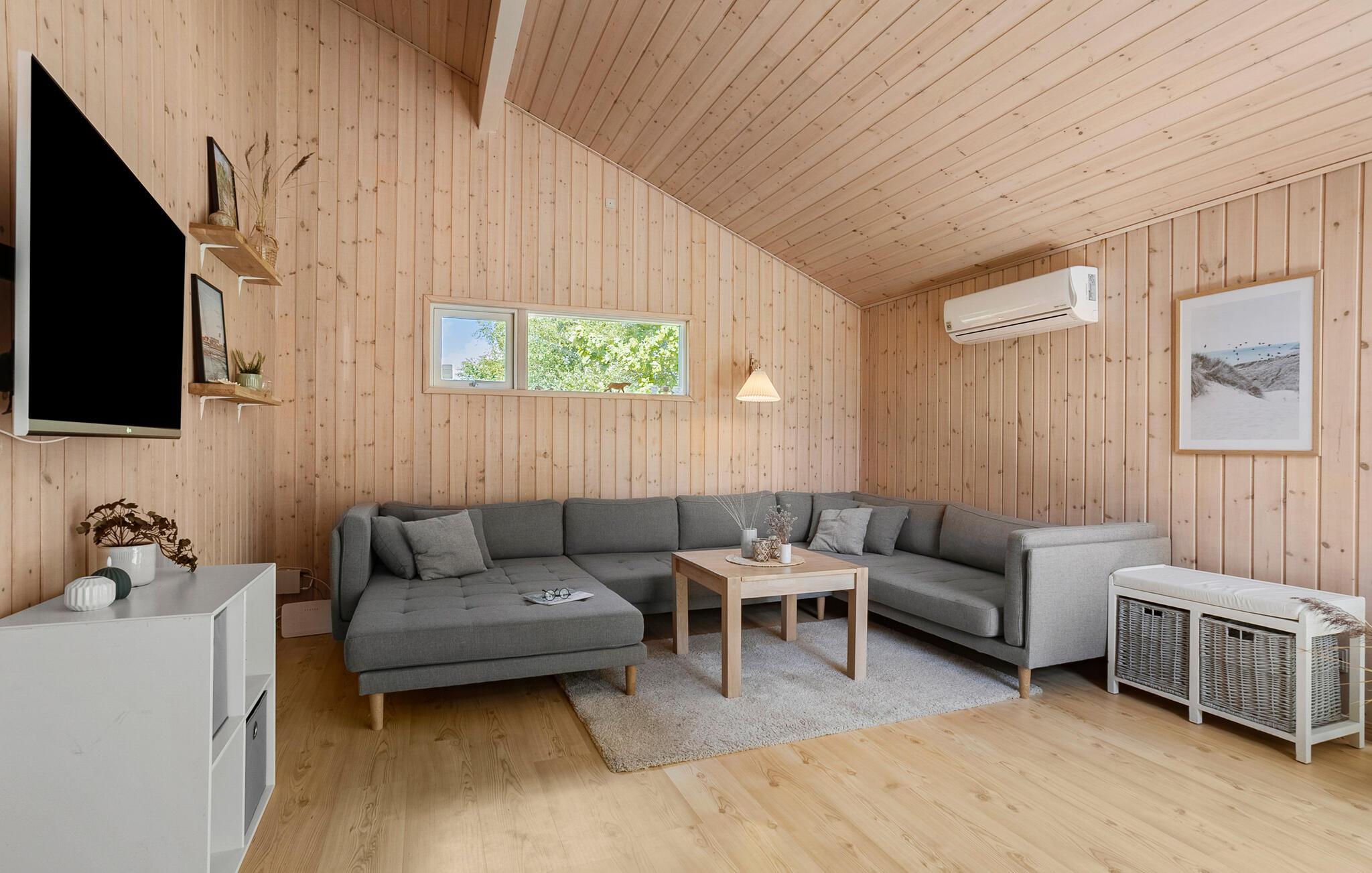 Nyd freden og roen i jeres hyggelige feriehus, der ligger kun få skridt fra en fin sandstrand. Beliggende i fredfyldte omgivelser med smukke træer, inviterer det jer til at sætte tempoet ned og slappe af. De klassiske møbler skaber en varm atmosfære, hvor I straks vil føle jer hjemme. Tilbered dagens måltider i det smukt udstyrede køkken og tilbring hyggelige aftener i opholdsstuen, hvad enten det er med en film, en bog eller ved den varme brændeovn. Saunaen og spabadet giver ekstra afslapning i slutningen af ??dagen.