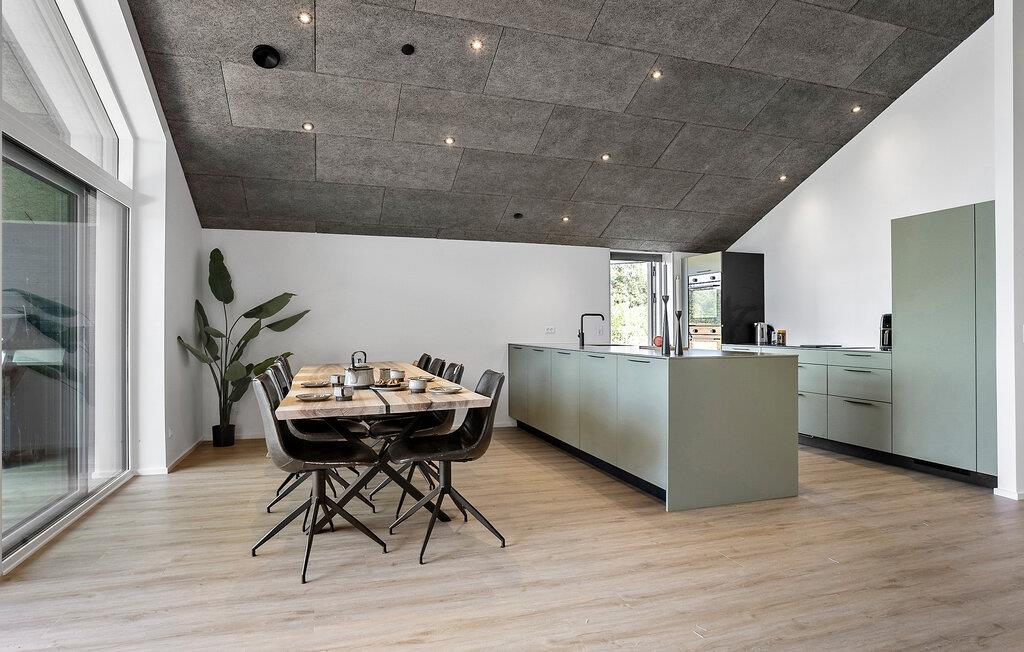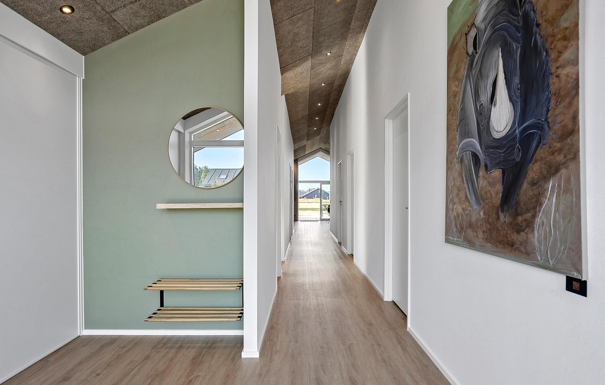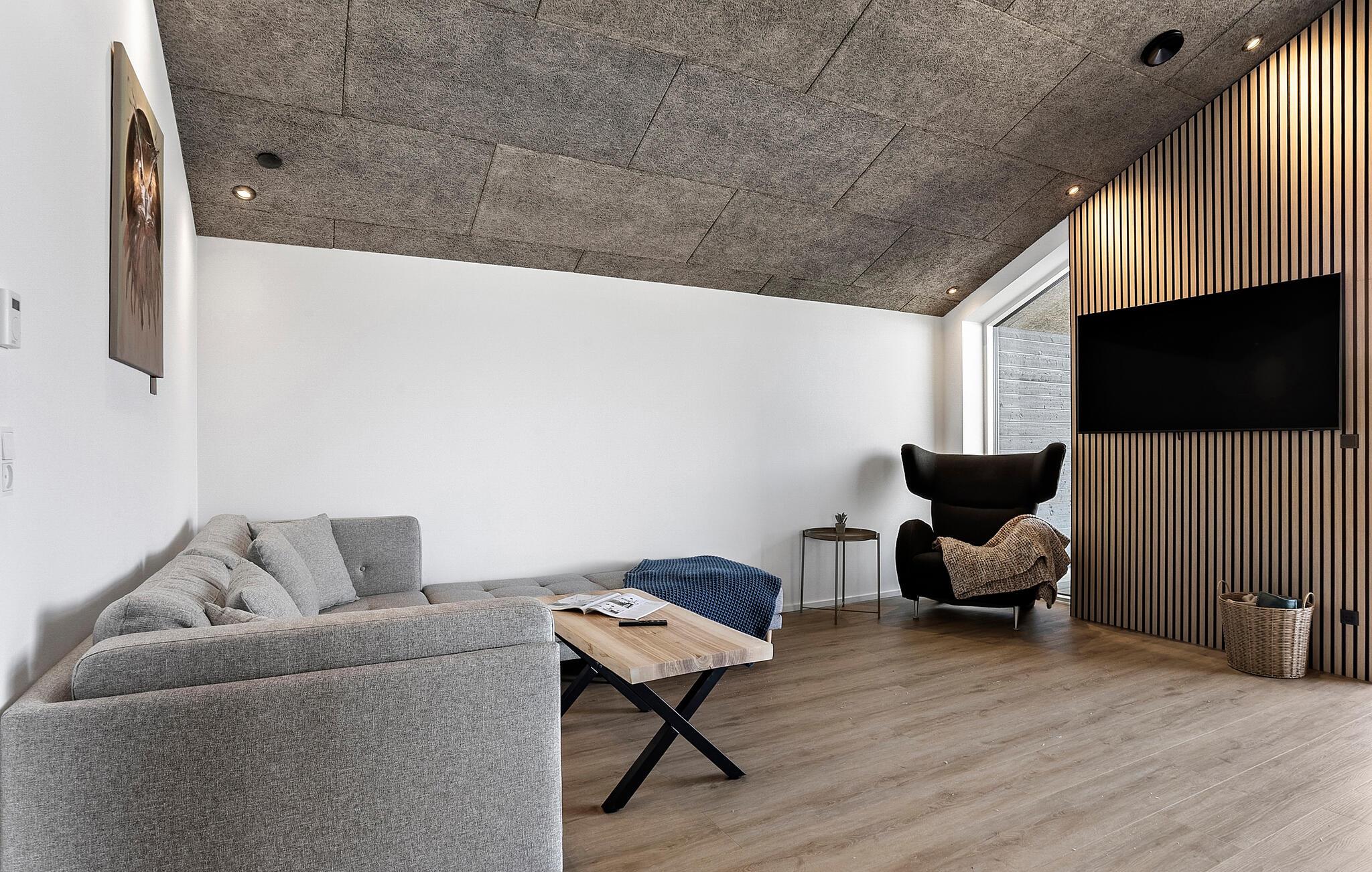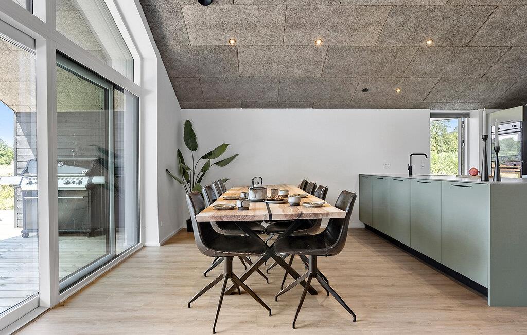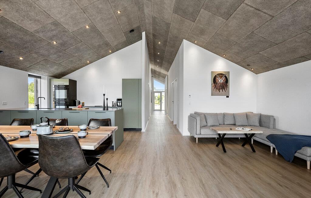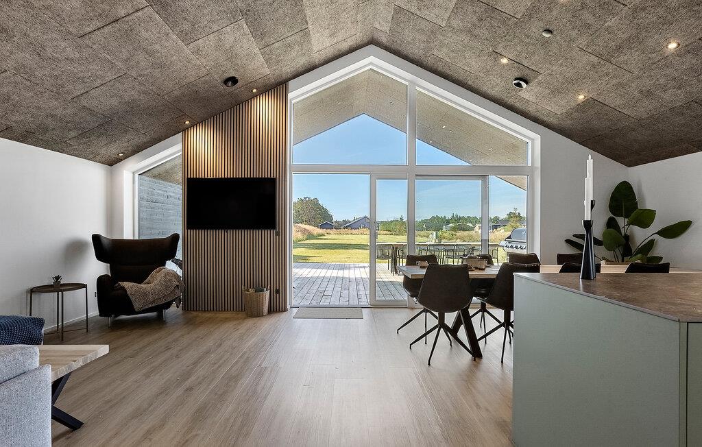 Dette rummelige hus kombinerer stilfuld elegance med hjemlig komfort og er fyldt med naturligt lys gennem de store vinduer. Mens I tryller lækre måltider frem i det moderne køkken eller sidder ved spisebordet i træ, kan I nyde den storslåede udsigt over det omkringliggende landskab. Bagefter inviterer den komfortable sofa jer til at slappe af – hvad enten det er med en god film eller blot at læne jer tilbage og tage en dyb indånding.