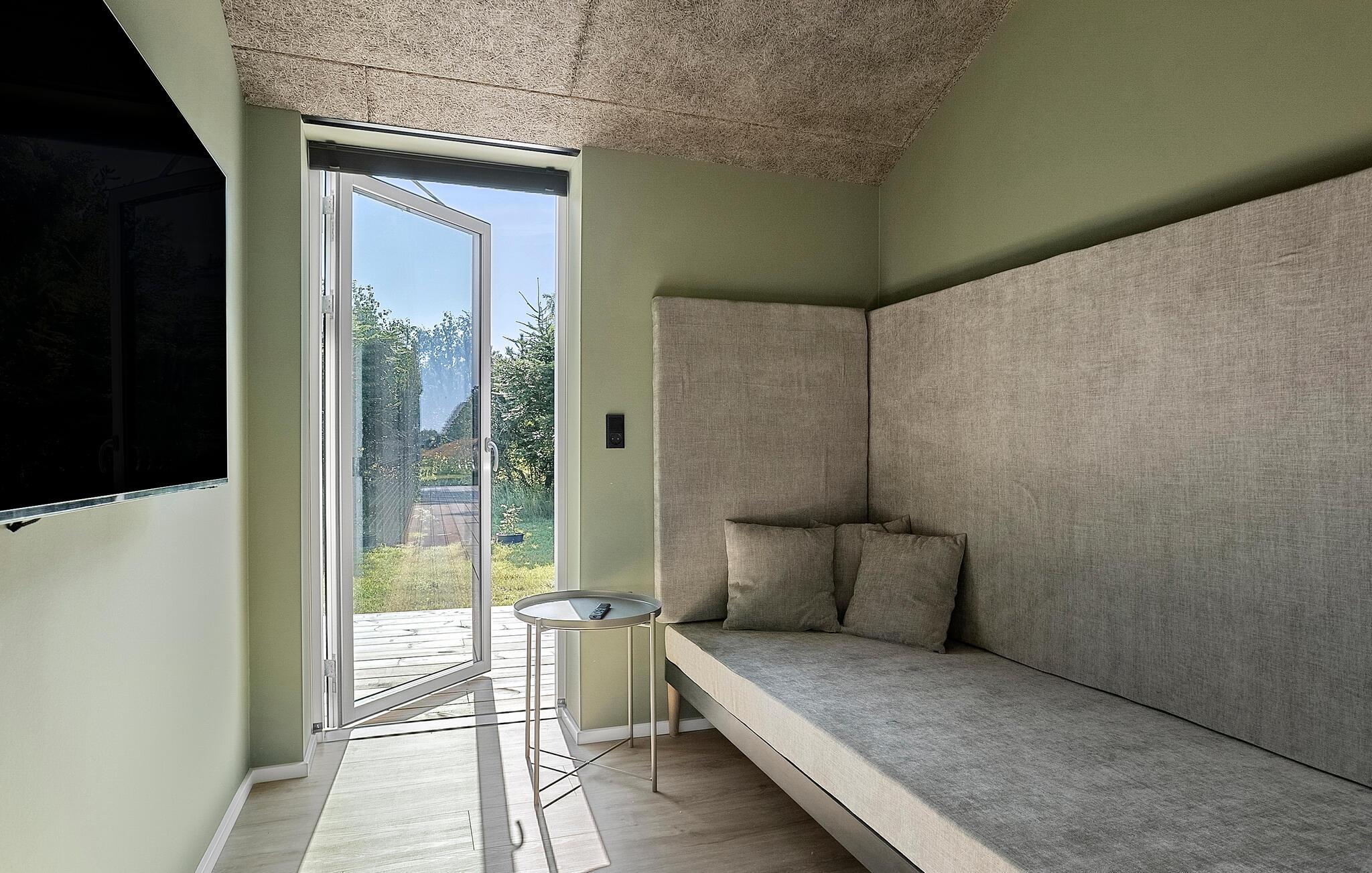 I solskinsvejr kan I nyde morgenmad på den store træterrasse. Lyt til naturens lyde og lad dens ro skylle over jer. Slap af i liggestolenee med en god bog eller tag en eftermiddagslur. Om aftenen kan I samle familie eller venner til en grillmiddag og afslutte aftenen på en afslappet måde.