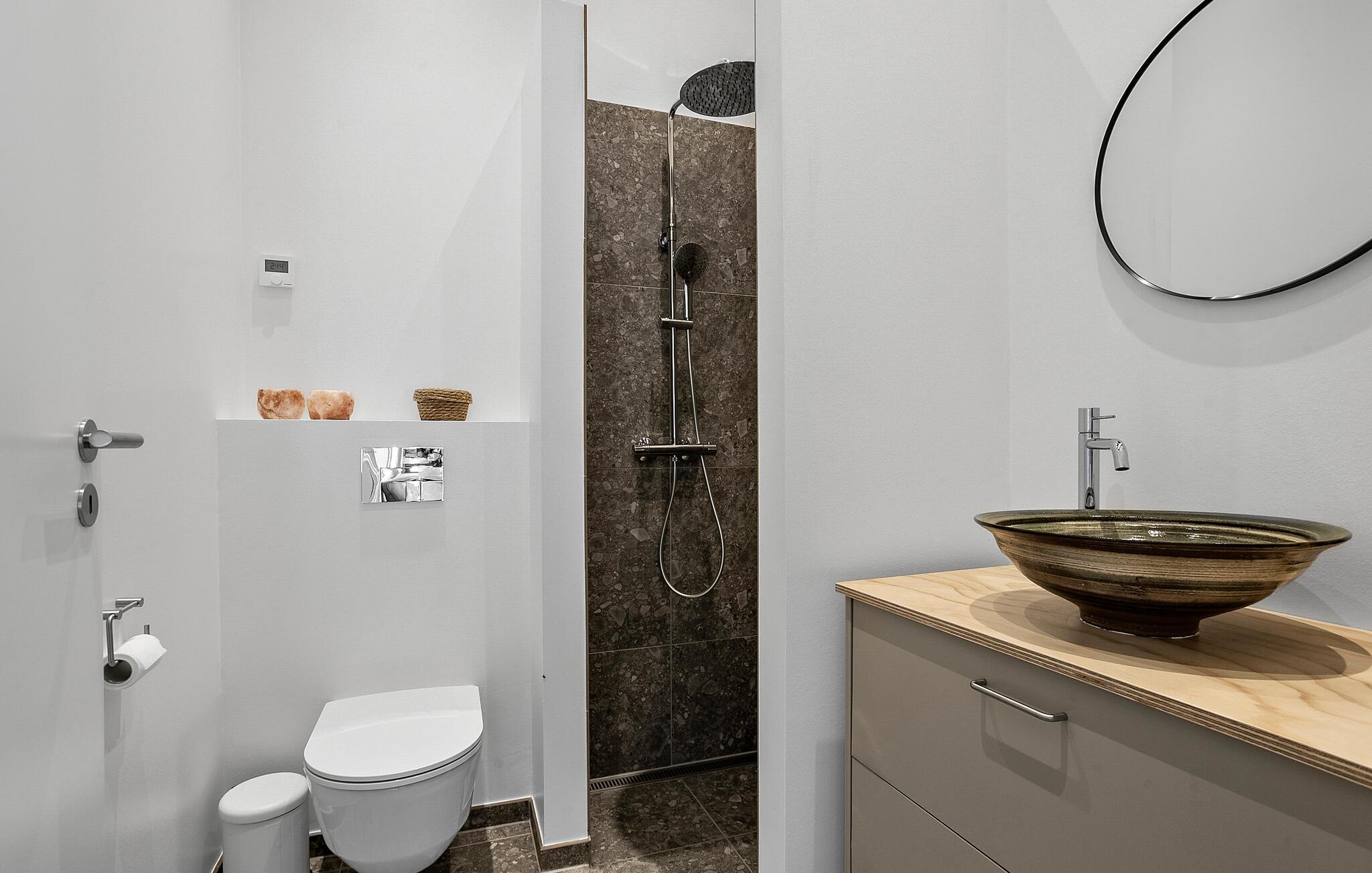 Badeværelse (nr. 1) - WC. Varmt og koldt vand. Bruser