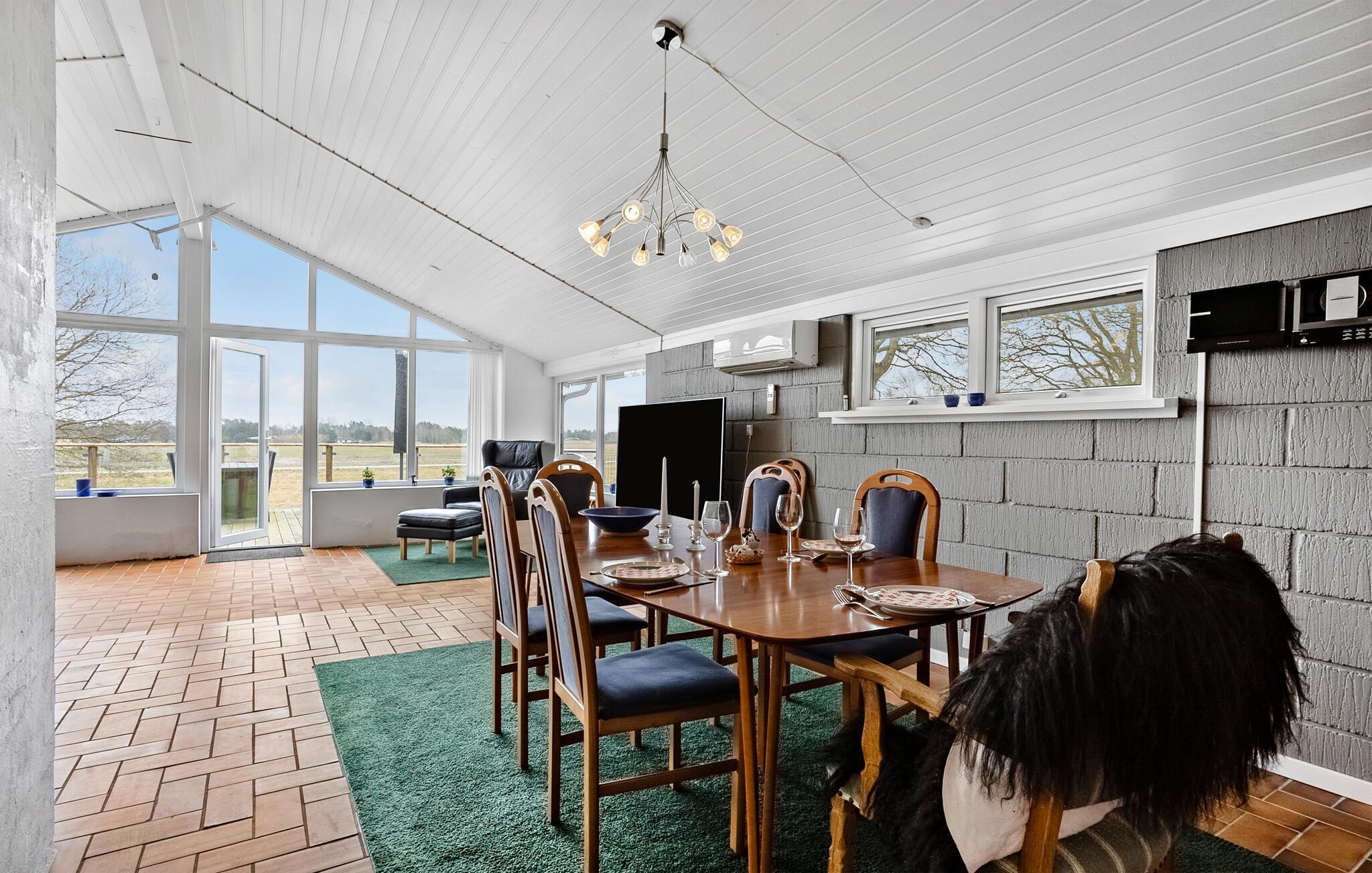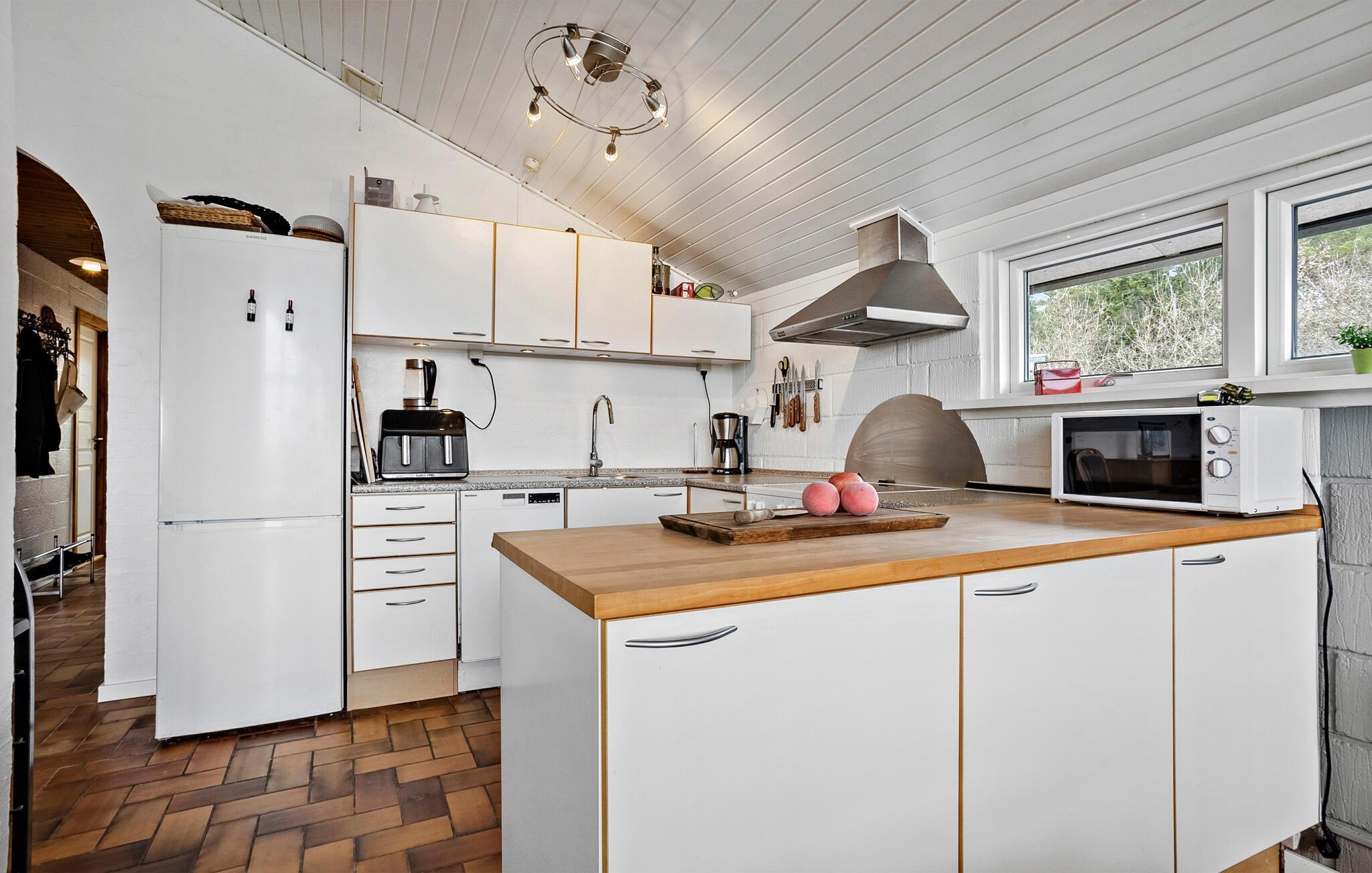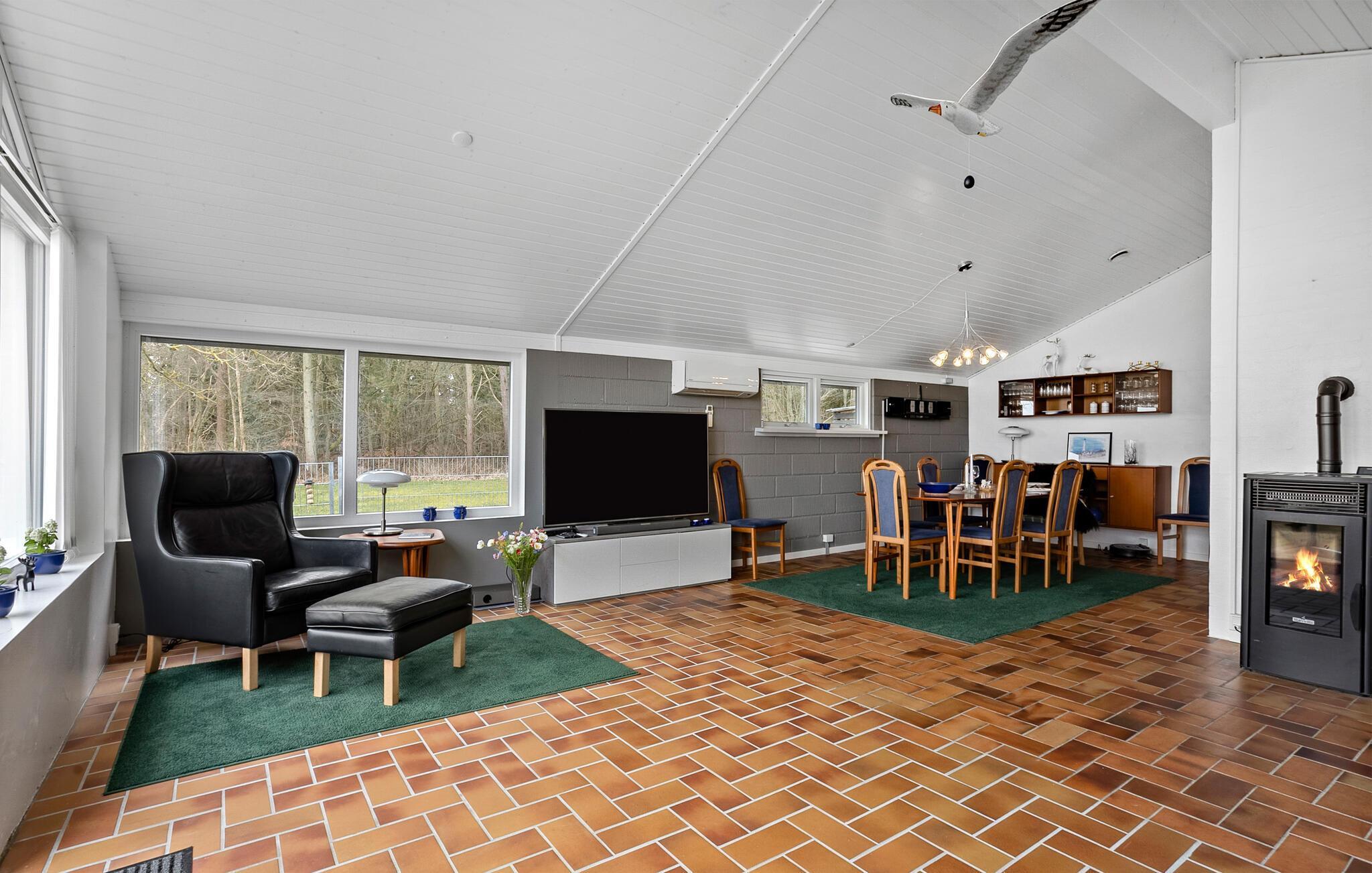 I kan se frem til nogle herlige dage, hvor I får jeres base i dette hyggelige sommerhus, som ligger i kort afstand fra Lyngsås smukke sandstrand. Her bor I ud til et roligt landskab med udsigt over åbne marker, så her kan I virkelig sætte hverdagen på pause. Boligen har et varmt og klassisk udtryk med masser af lys fra de store vinduer. I det veludstyrede køkken er der alt, hvad I skal bruge for at gøre klar til feriens måltider. Opholdsstuen har et indbydende sofahjørne med lænestole og brændeovn, hvor I kan sætte jer til rette efter dagens eventyr. Sæt jer med en spændende film eller læs en god bog.