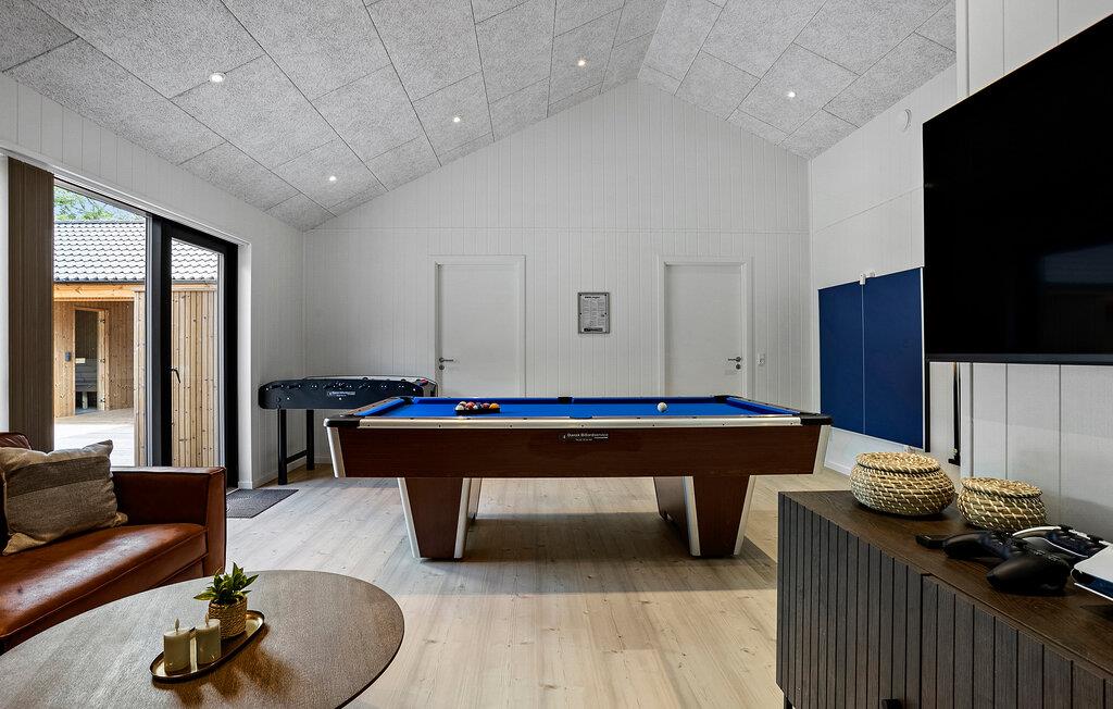 Varme trætoner, diskrete farver og kærligt udvalgte møbler skaber en atmosfære, hvor I kan slappe af og lade op på samme tid. Det rummelige sofaområde tilbyder plads til at læse, slappe af eller nyde en hyggelig filmaften. De, der foretrækker en mere aktiv oplevelse, kan nyde et spil billard eller bordfodbold, mens lækre måltider tilberedes i det moderne køkken, ledsaget af duften af friske ingredienser og et glas vin.
