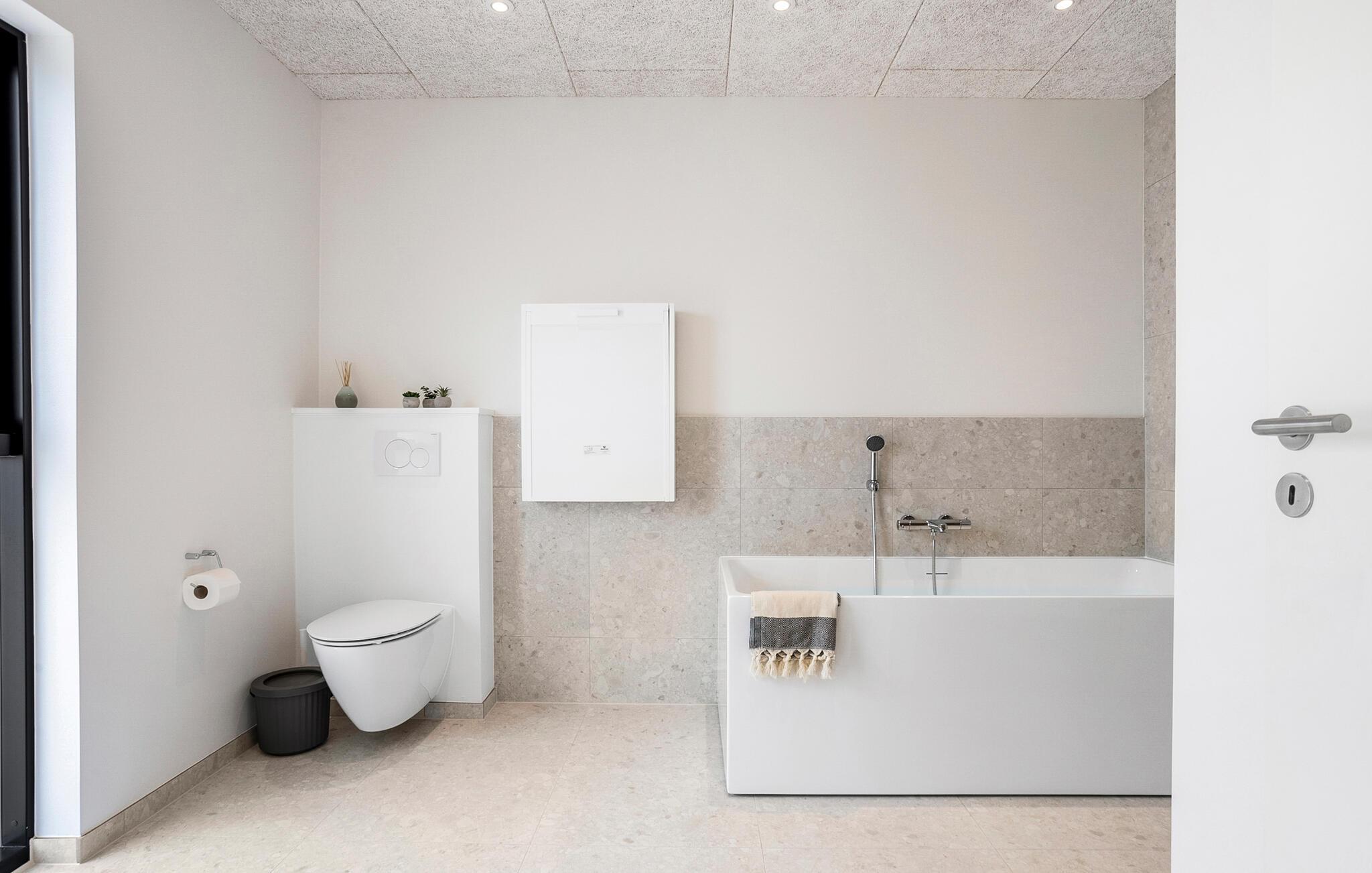 Badeværelse (nr. 1) - WC. Varmt og koldt vand. Bruser og badekar