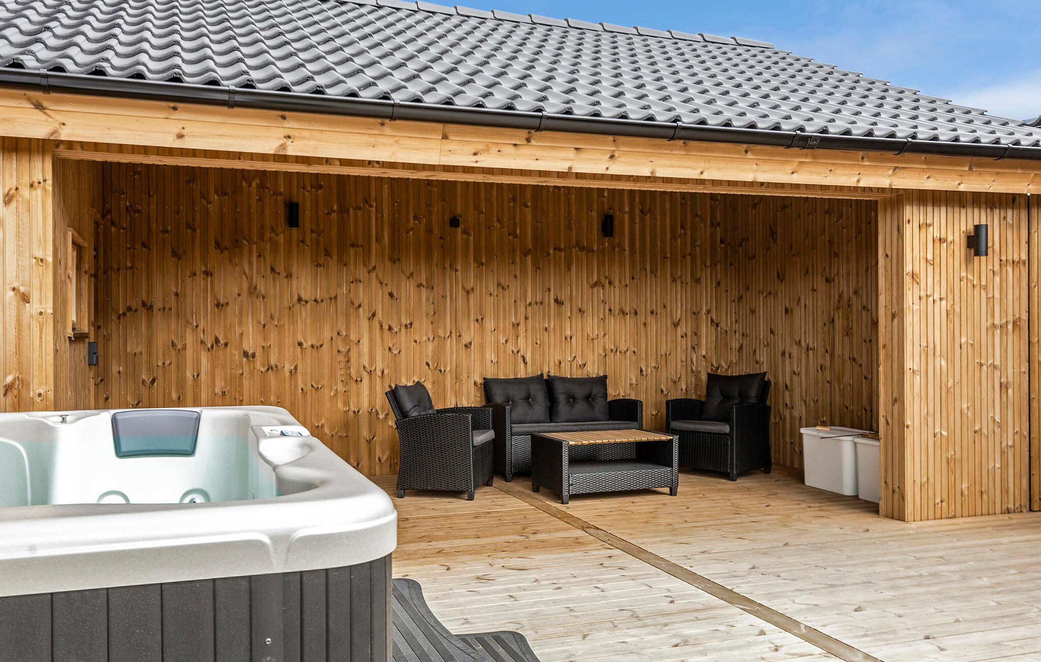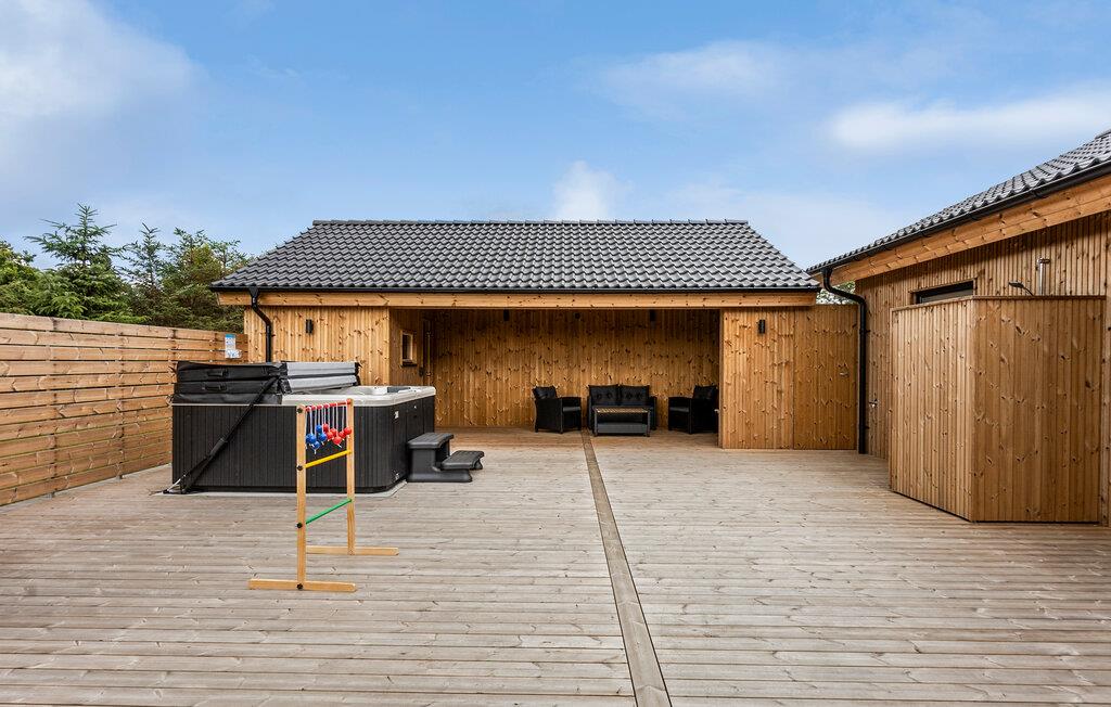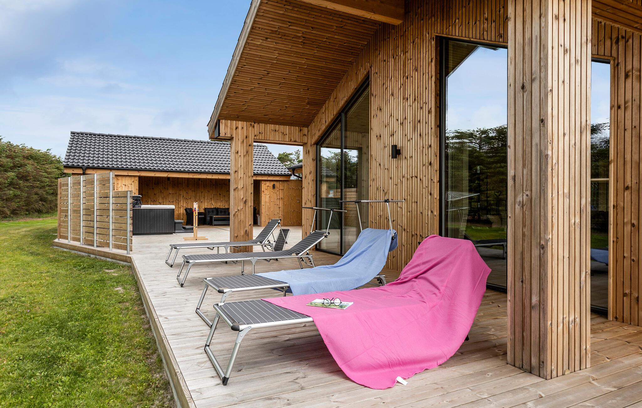 Stilfuldt feriehus i Sæby med pool, aktivitetsrum og udendørs wellness.