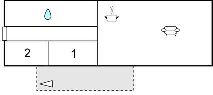 Opholdsstue/køkken - 1 Soveplads. (Sofa, madras eller lignende).