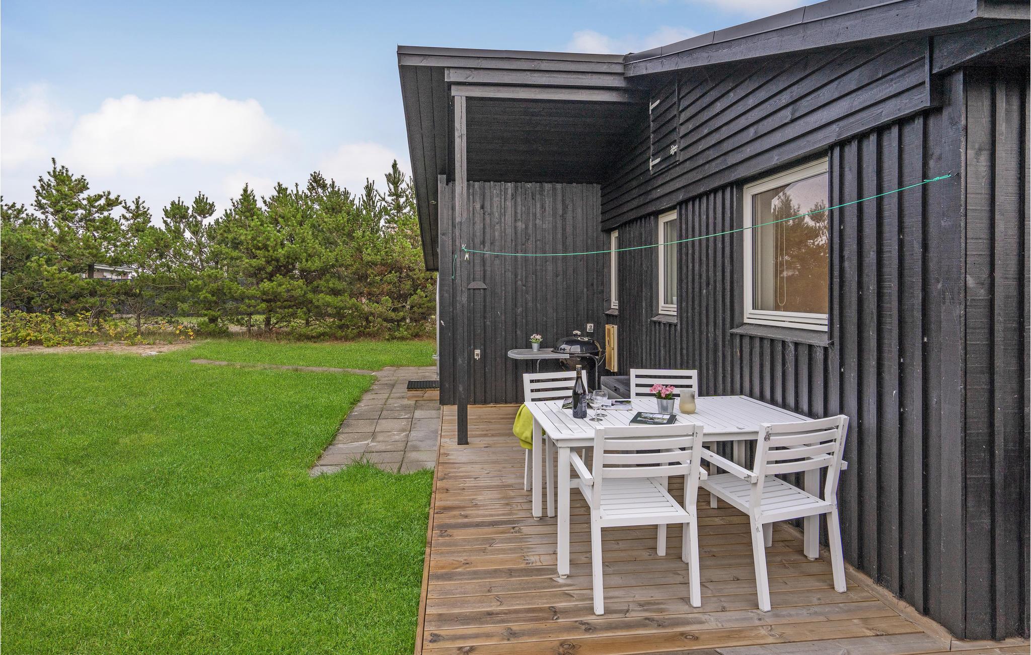 Hyggeligt feriehus nær stranden i Lyngså med stor terrasse og brændeovn for afslapning.