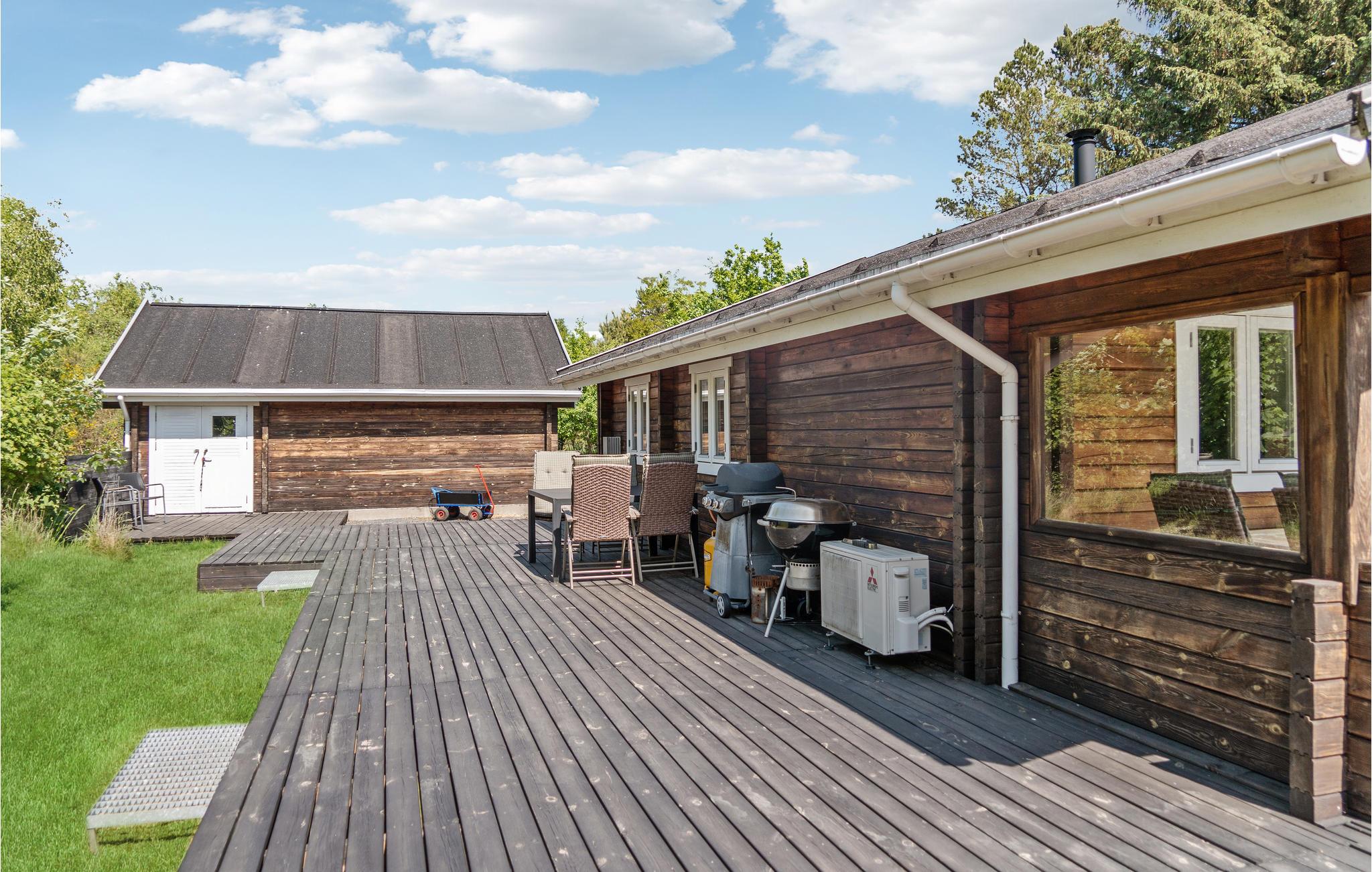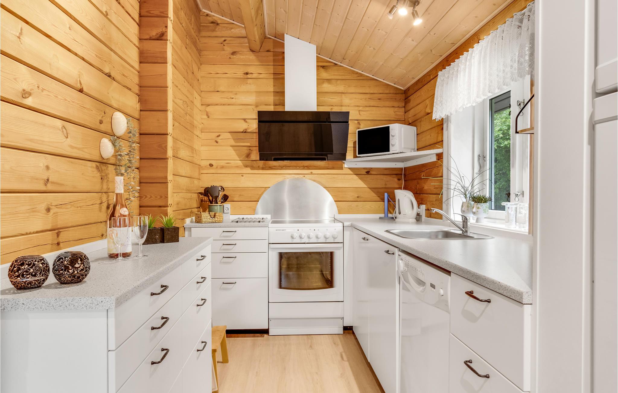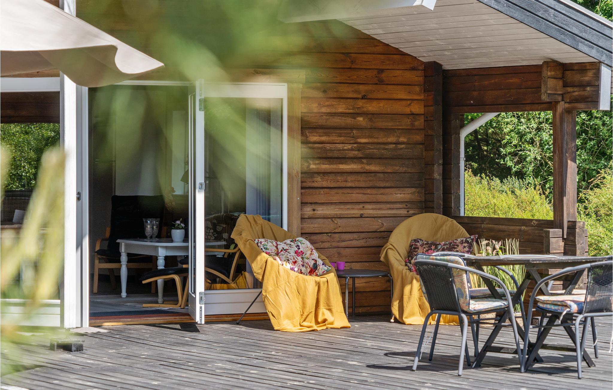Velkommen til dette indbydende feriehus med rustik charme på en dejlig ugeneret grund omgivet af frodig natur. De rustikke materialer tilfører huset et varmt udtryk, og den åbne planløsning giver mulighed for ekstra nærvær. Her kan I tale sammen, uanset hvad I hver især laver. Måske tegner jeres børn ved spisebordet eller spiller kort på sofaen, mens I tryller yndlingsretterne frem i køkkenet? Efter en aktiv dag kan I tænde op i brændeovnen og læne jer tilbage på sofaen. Udenfor tilbyder huset masser af plads til leg for hele familien. Mens I nyder solen på terrassen, kan jeres børn boltre sig på trampolinen eller måske gynge? Leg picnic i skyggen af træerne.