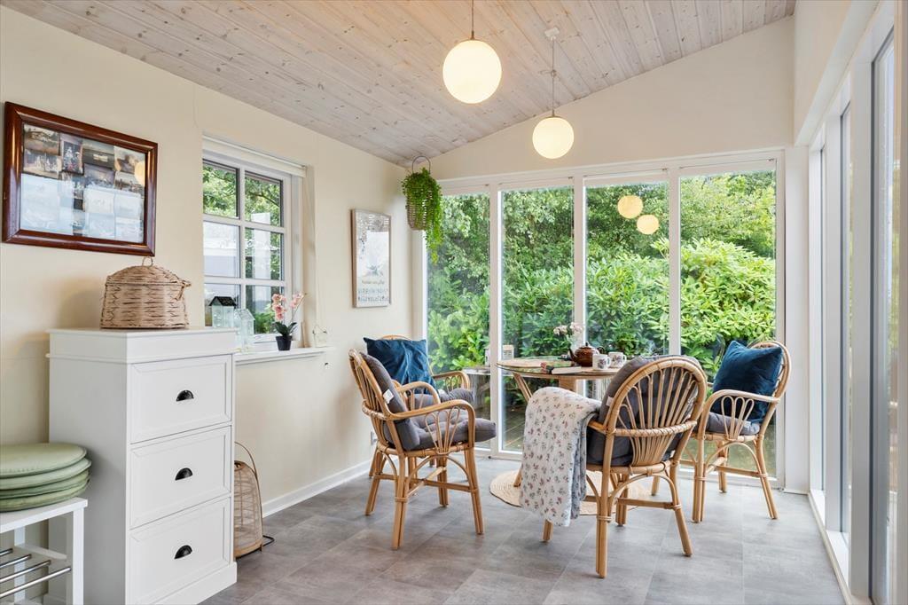 Sommerhuset ligger godt placeret på den lukkede Hærvej, lige ud til den smukke Skibsted Fjord, der er en sidefjord til Limfjorden. Nissum Bredning ligger også bare en kort og bekvem gåtur væk, og hvis du hellere vil bade og surfe på havet frem for i fjorden, kan du sætte kursen mod stranden i Agger eller en af de andre dejlige kystbyer i Thy. Nationalpark Thy er spændende at udforske, men I kan også se frem til masse af naturskønne udflugter på Thyholm, og en færgetur til charmerende Venø kan måske også friste.