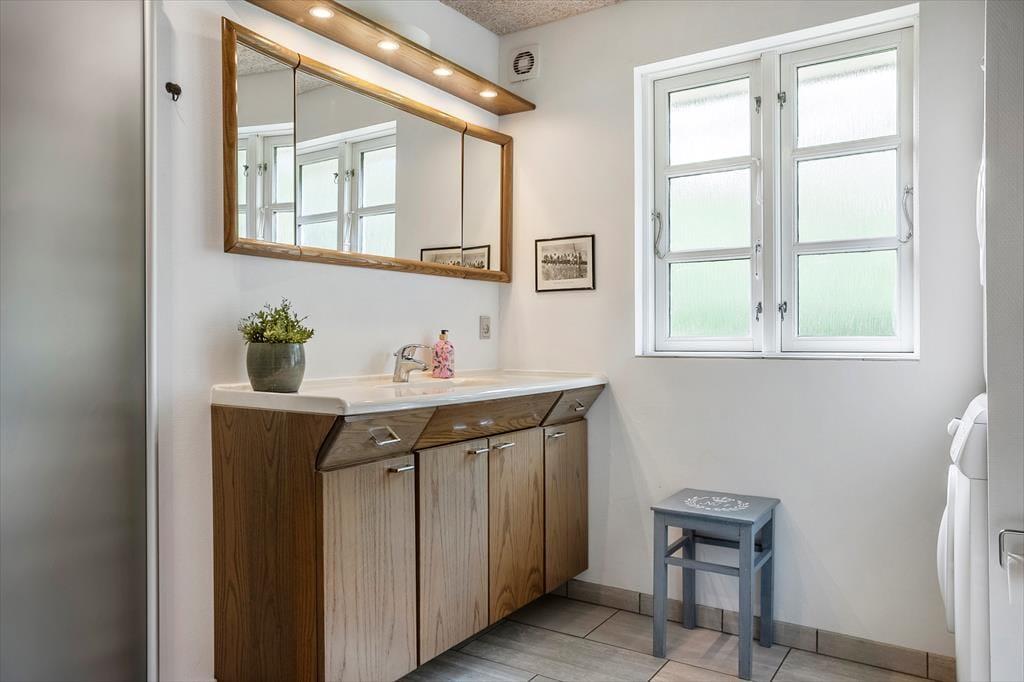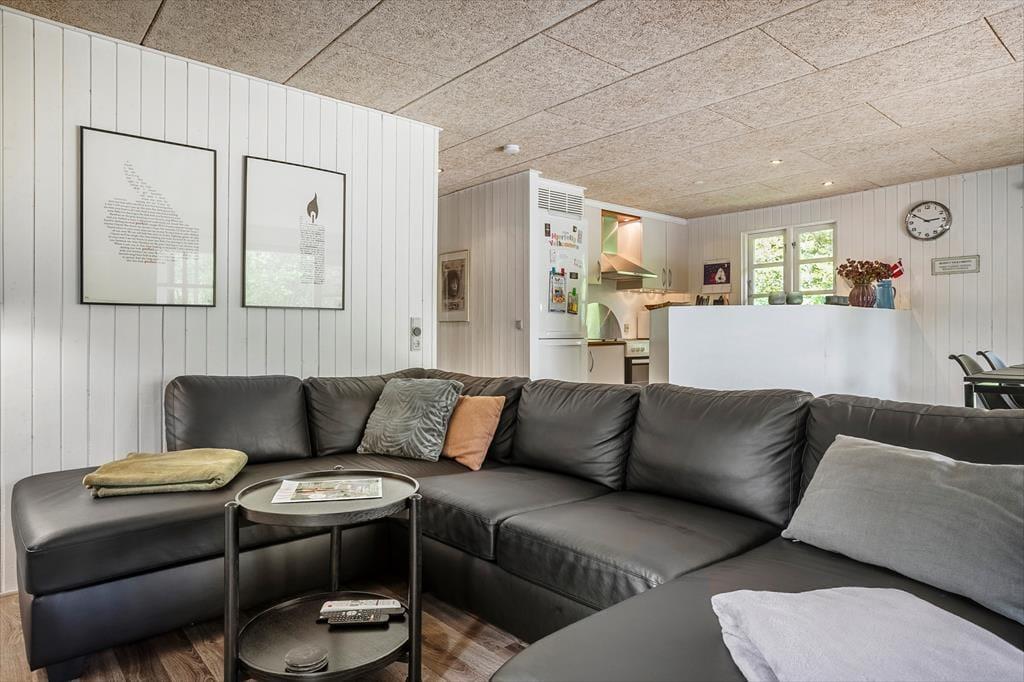 Allerede når du træder ind ad døren, møder du en varm og indbydende atmosfære. Sommerhusets lyse indretning og venlige farvetoner inviterer dig til at sænke skuldrene og tage ferien i helt roligt tempo. Stuen og køkkenet ligger i åben forbindelse, hvilket gør det let at være sammen – også når nogen laver mad, og andre nyder et spil kort ved spisebordet. Brændeovnen står centralt placeret og sørger for både varme og feriestemning, når flammerne knitrer bag ruden og skaber den helt særlige hygge, man kun finder i et sommerhus. Her er plads til at samle familien til nærvær, latter og langsomme dage i sofaen – og med god plads til seks personer er der rig mulighed for, at både børn og voksne kan føle sig godt tilpas.