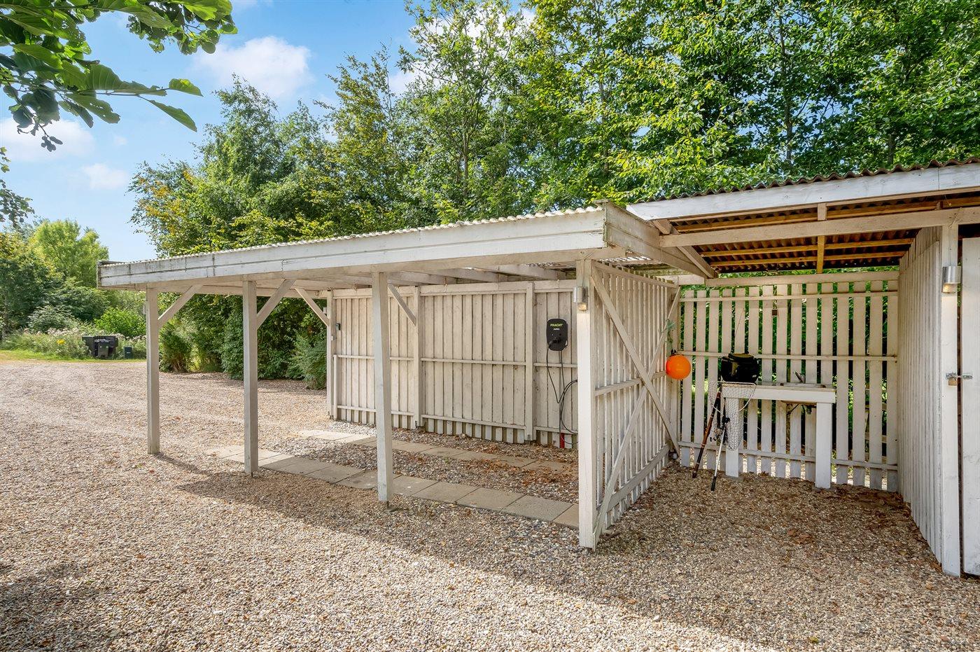 Der er installeret stik til opladning af elbil med 11 kW ladeeffekt. Parkering ved ferieboligen.