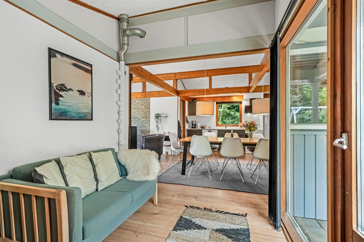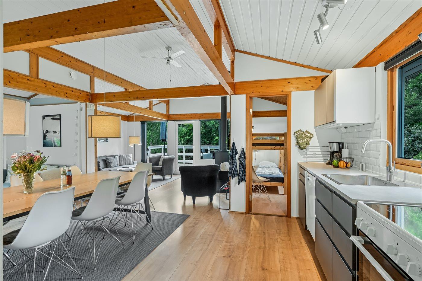 Nyrenoveret sommerhus med 4 soveværelser, aktivitetsrum og elbiloplader i roligt område nær fjord.
