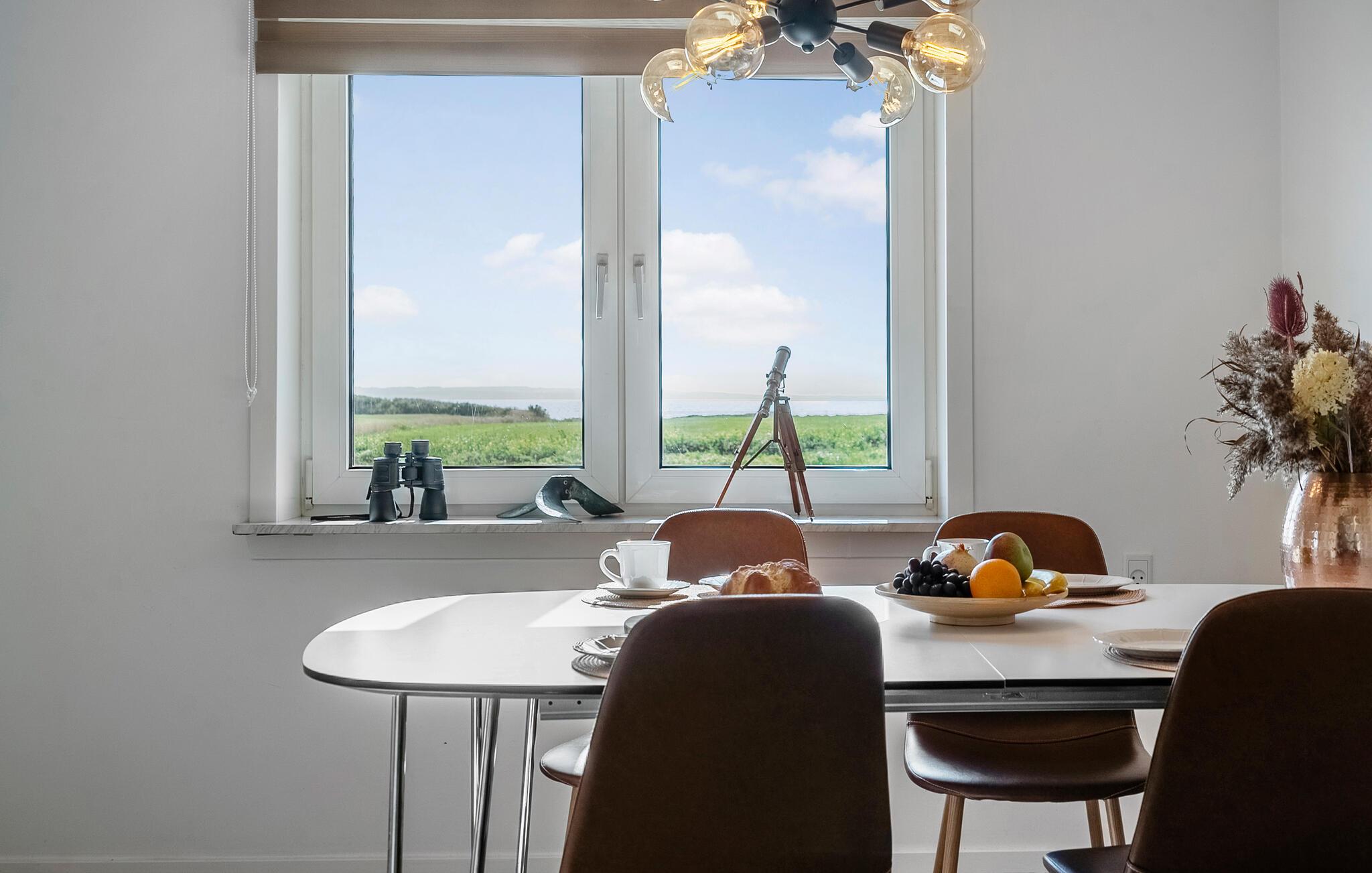 Tilbring hyggelige timer udendørs. Sid på terrassen med komfortable stole og nyd udsigten over marker til vandet. Brug den udendørs spiseplads til en fælles morgenmad eller middag i den friske luft, og forkæl jer selv med øjeblikke med ro. På den rummelige grund har børnene plads til at lege, mens voksne kan nyde den idylliske natur.