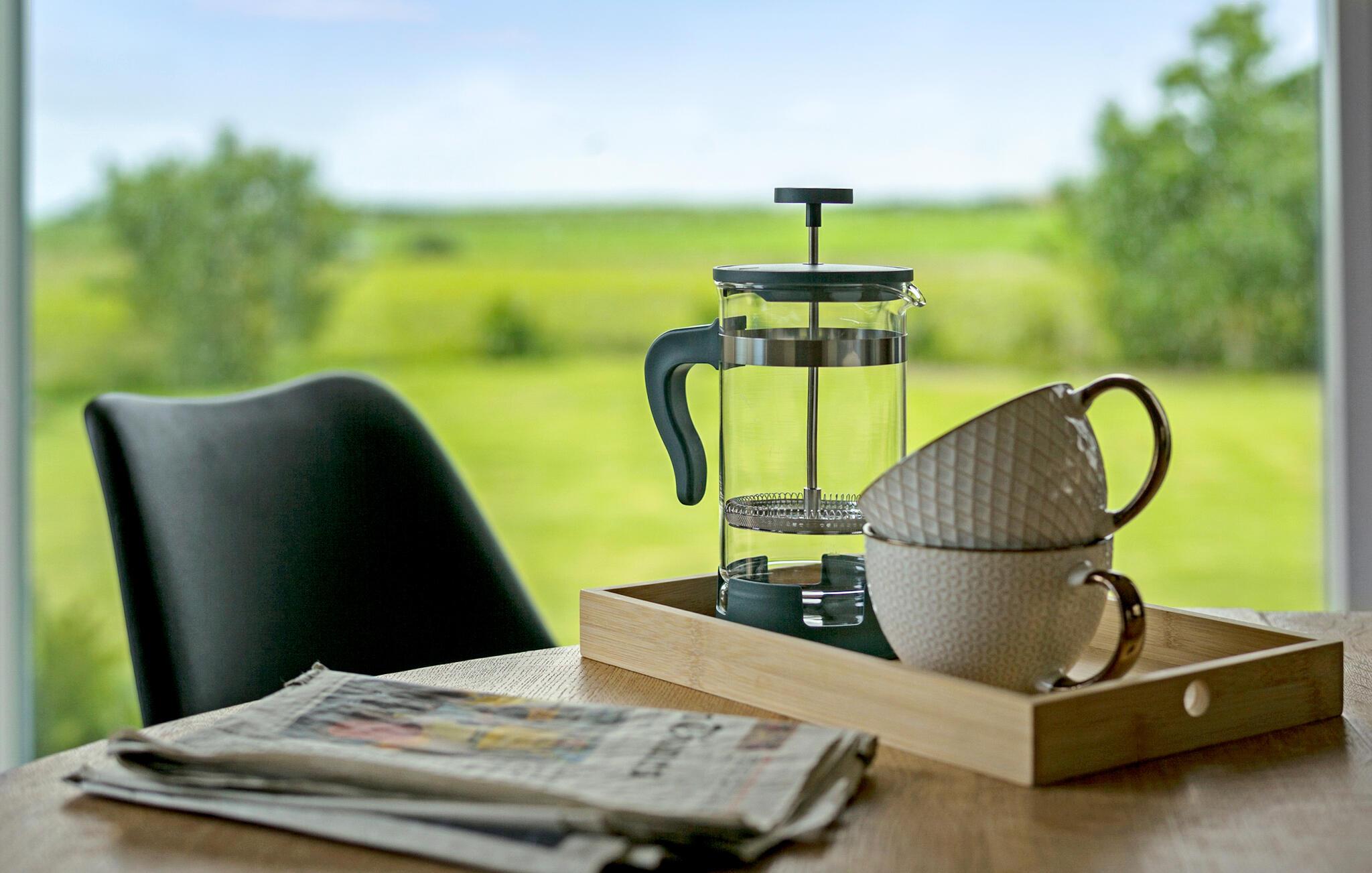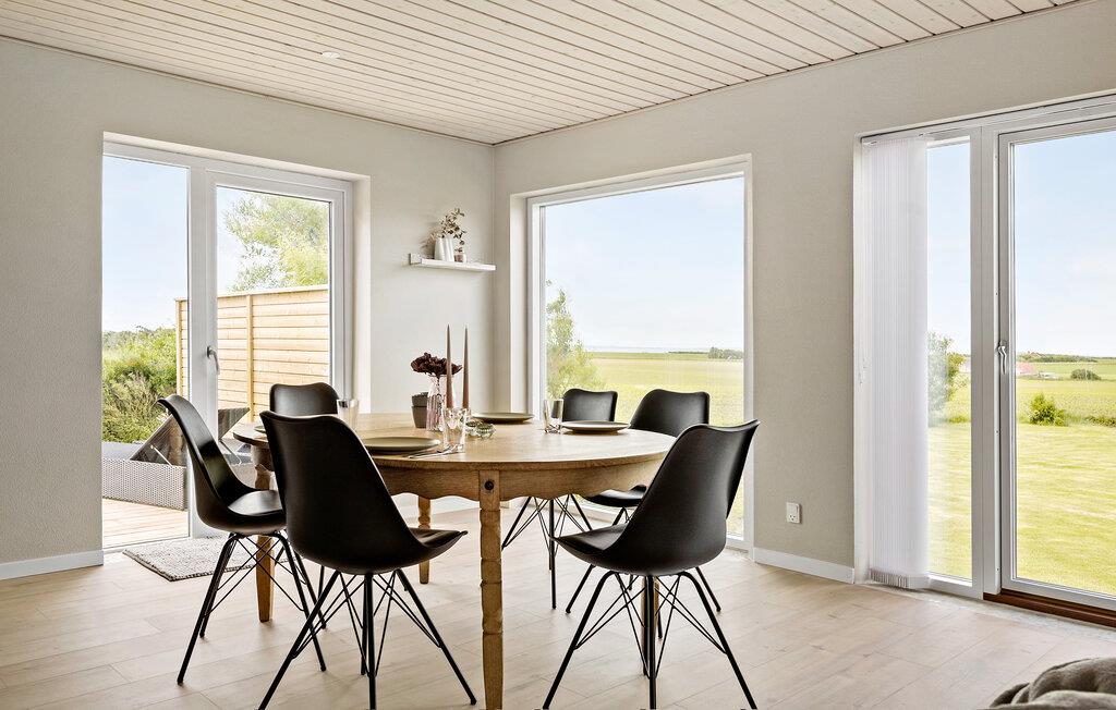 Jeres hus byder på en dejlig kombination af ro, naturoplevelser og komfort. Nyd den hyggelige indretning, og glæd jer til den rummelige terrasse, der indbyder til afslappede timer i den friske luft. Her kan I også grille og tilbringe hyggelige aftener sammen med familien eller vennerne og nyde udsigten over de vidtstrakte marker og til fjorden i det fjerne. Jeres køkken byder på alt, hvad I behøver for at tilberede jeres fælles måltider. Nyd dem i det lyse spiseområde, og glæd jer også her over den smukke udsigt til omgivelserne udenfor.