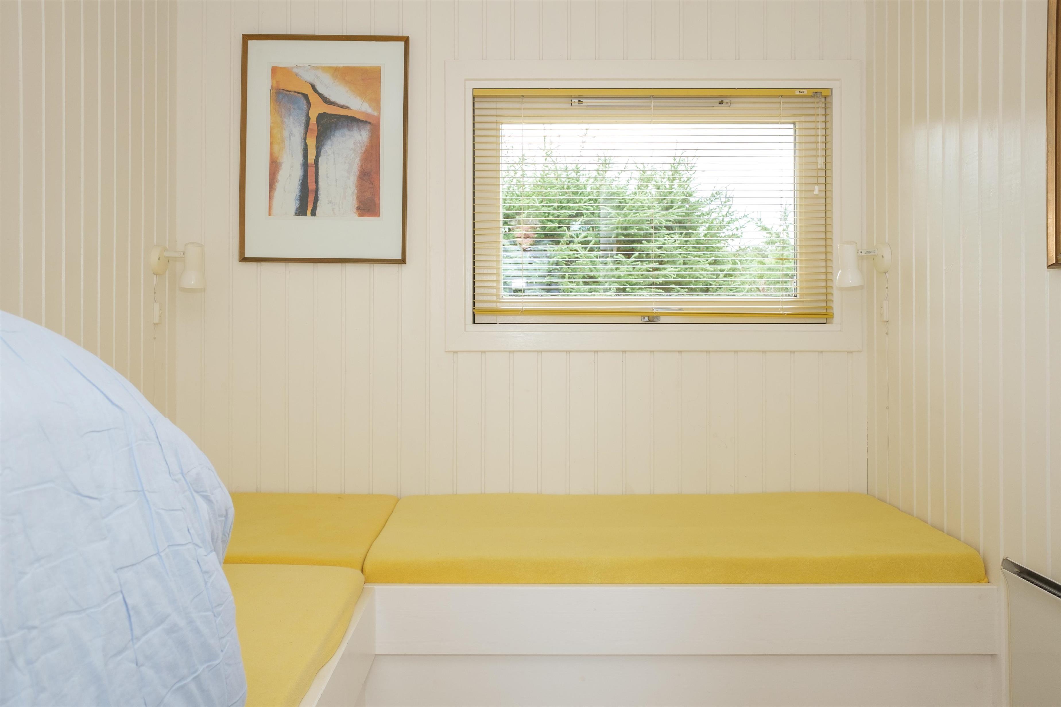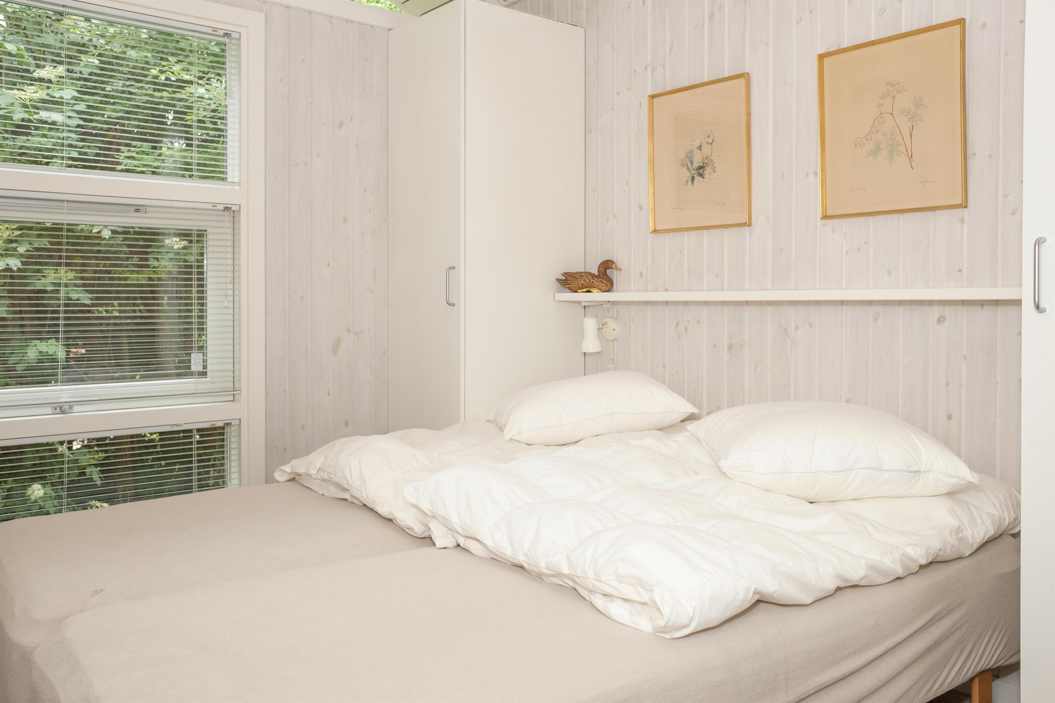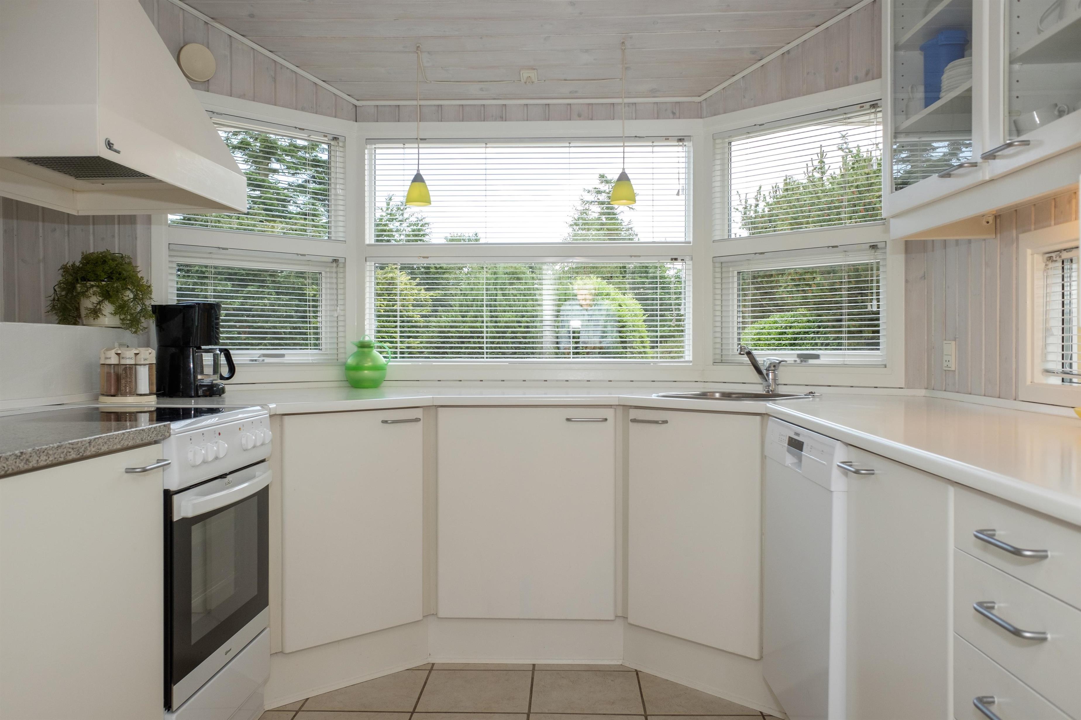 Lys opholdsstue med åbning til kip, brændeovn, spiseafdeling til 6 og sofaarrangement med lænestol og TV. I åben forbindelse med stuen ligger det flotte køkken med hvidt inventar, komfur med keramiske kogeplader og ovn, køle-/fryseskab, opvaskemaskine og mikrobølgeovn.Der er 2 soveværelser med 2 enkeltsenge sat sammen, 1 soveværelse med 2 enkeltsenge samt hems, i alt 6 sovepladser. Dejligt badeværelse med gulvvarme, bruseniche, spabadekar og sauna. Bryggers med vaskemaskine og god opbevaringsplads. Huset har TV med danske (inkl. TV2) og tyske kanaler, DVD-afspiller, CD-afspiller og radio. Der er internetadgang.