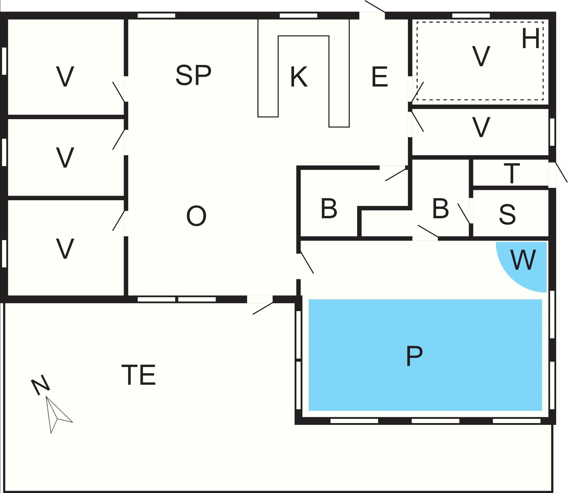 Der er en stor swimmingpool, spabad og sauna. Fra stuen kan I holde øje med poolen, da et stort glasparti adskiller poolrummet fra resten af sommerhuset. Det betyder, at I kan holde et vågent øje med børnene, mens de boltrer sig i det lune vand.
