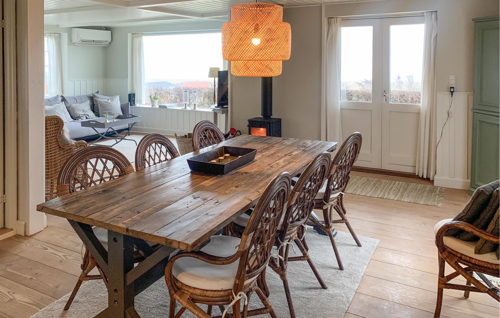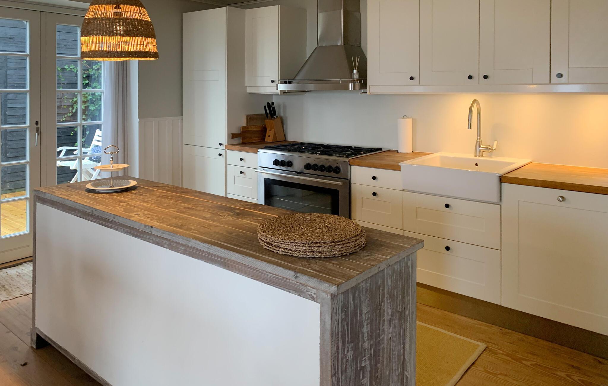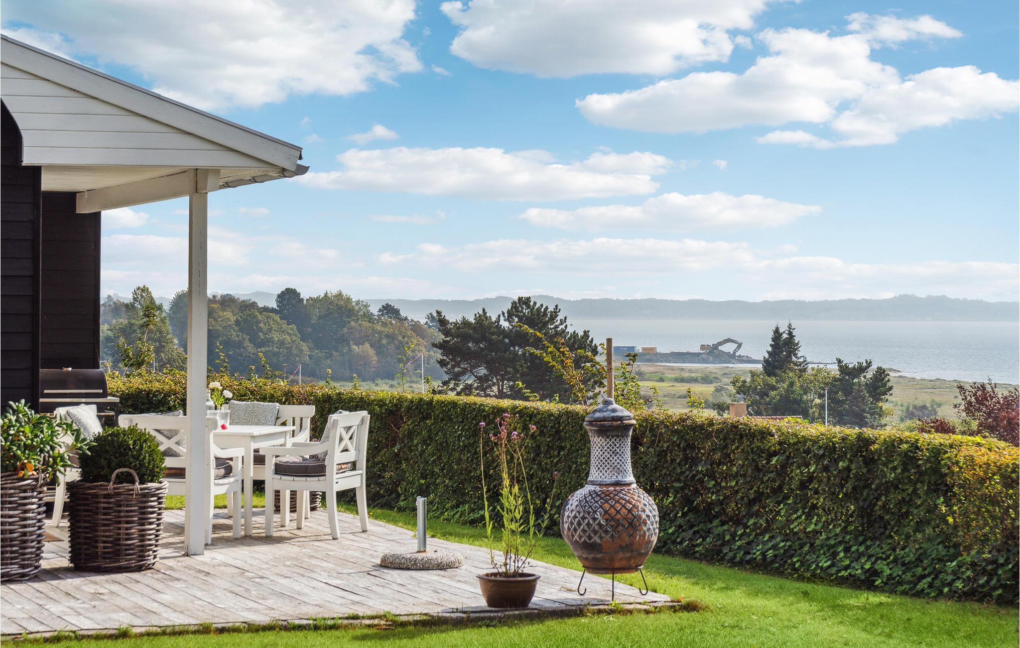 Nyd en dejlig ferie med jeres lille familie eller et vennepar i dette hyggelige feriehus. Lyse møbler og indretning skaber en venlig atmosfære, der gør det nemt for jer at slappe af. Velvære og rekreation er i højsædet og kan nydes i fulde drag, mens I laver mad, spiser og slapper af i sofaen. Slik sol på den store træterrasse og sæt jer i skyggen af træet og nyd udsigten over vandet.