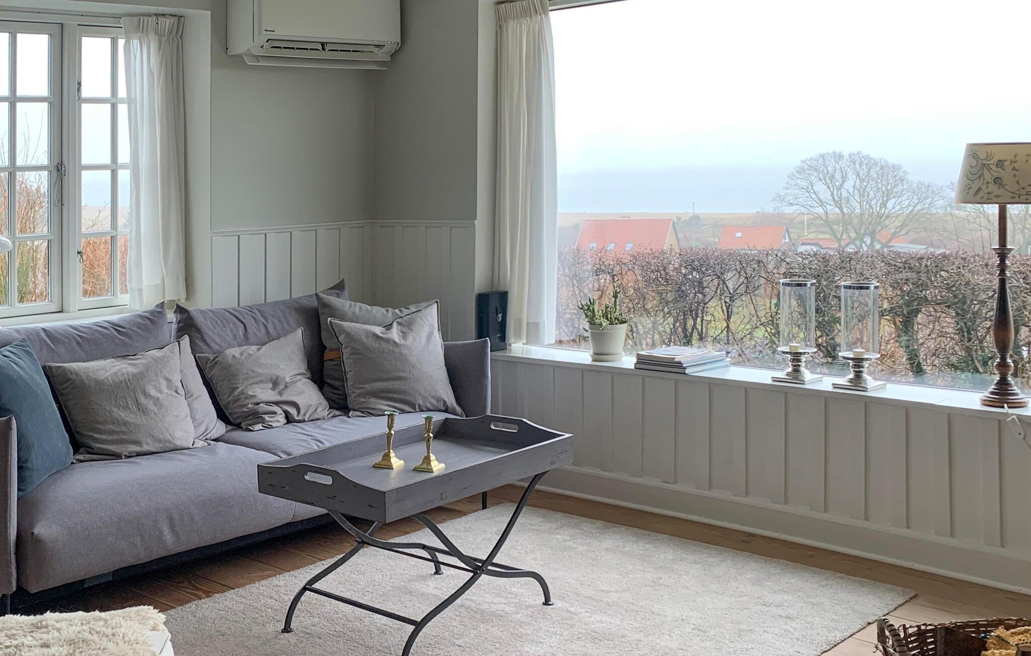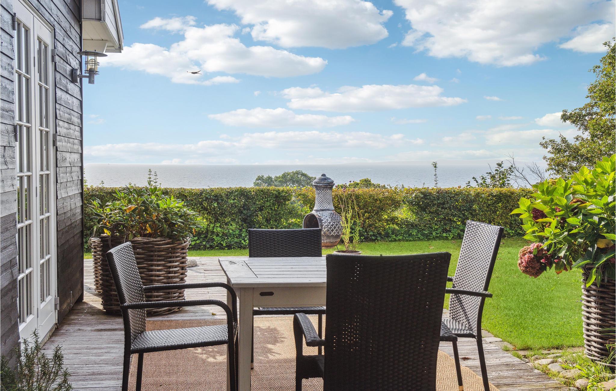 Hyggeligt feriehus i Nationalpark Mols Bjerge med panoramaudsigt over havet og tæt på sandstrand.
