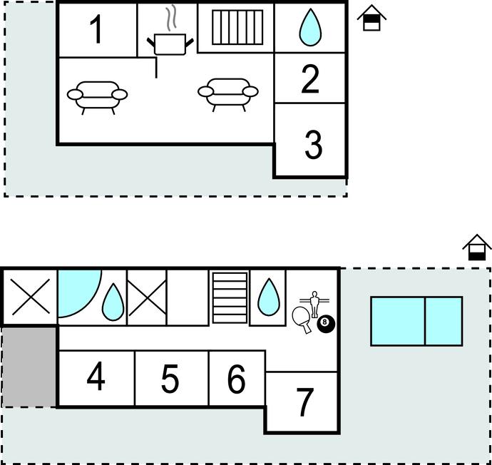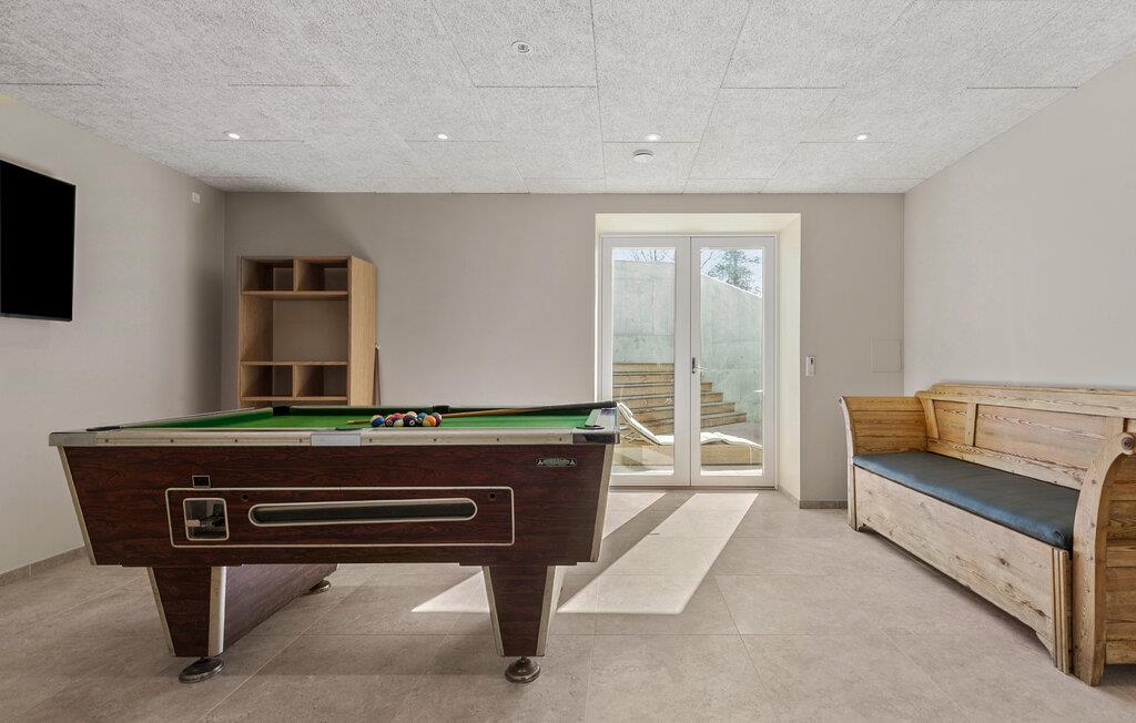 Jeres stilfulde hus tilbyder optimale betingelser for en større gruppe rejsende eller flere familier, der ønsker at tilbringe afslappende dage sammen. Den høje beliggenhed giver en smuk udsigt over de grønne områder og masser af lys indenfor. Træd ind i den åbne opholdsstue med stor sofagruppe og brændeovn. Sæt jer ved det lange spisebord og nyd måltiderne sammen i en hyggelig atmosfære. Tilbered måltiderne i det moderne udstyrede køkken, som tilbyder plads til flere gourmeter. Bagefter kan I spille et spil billard eller slappe af foran fjernsynet.