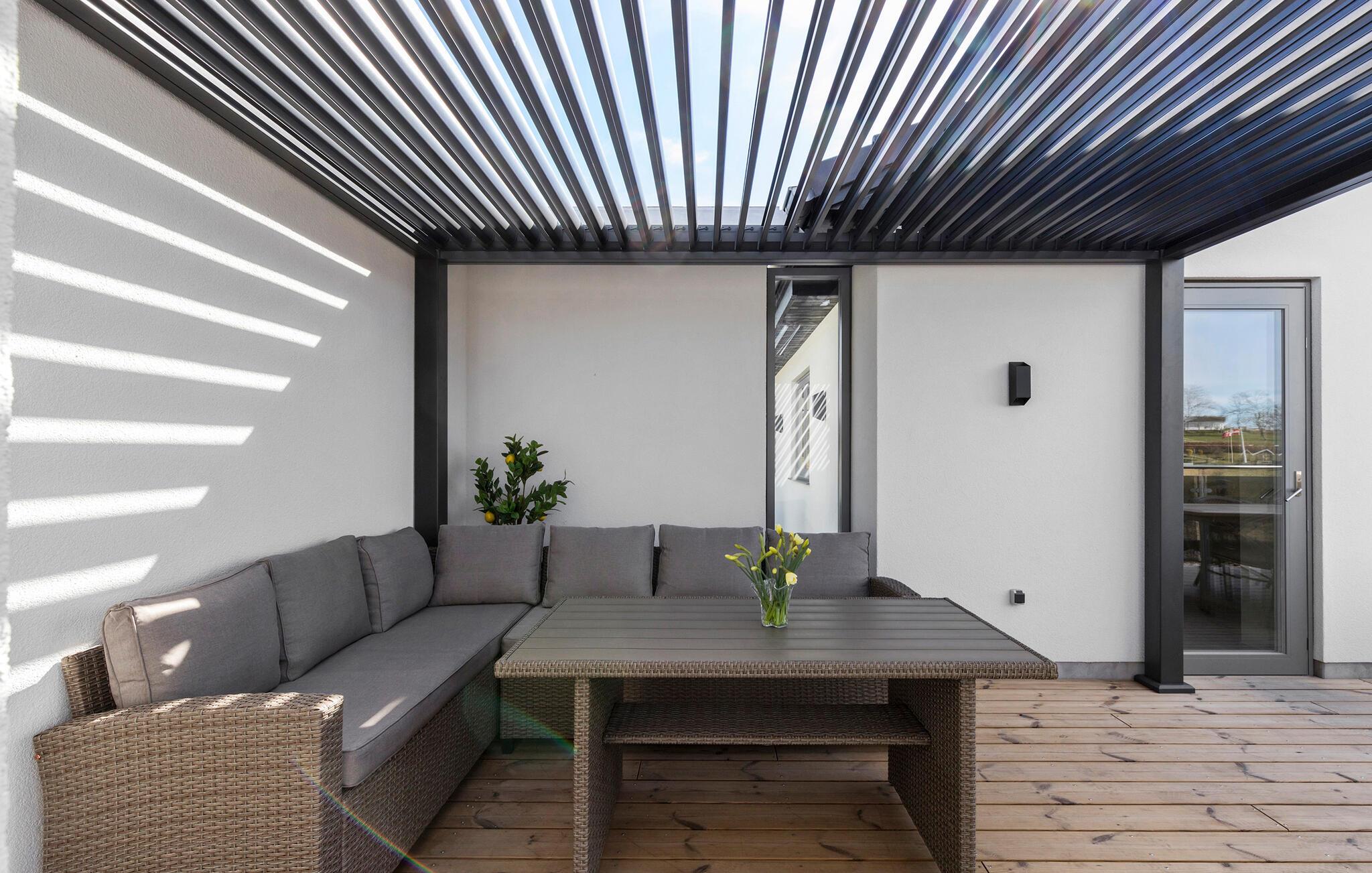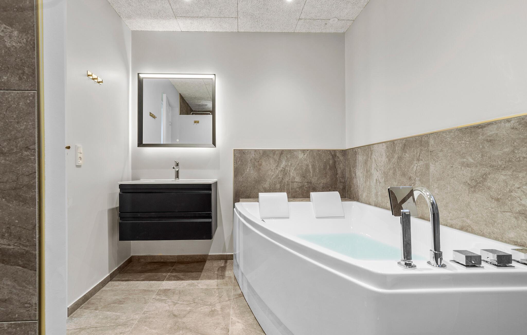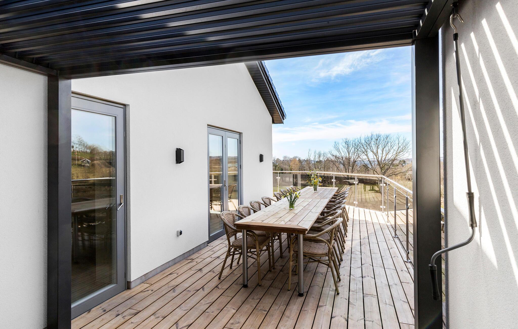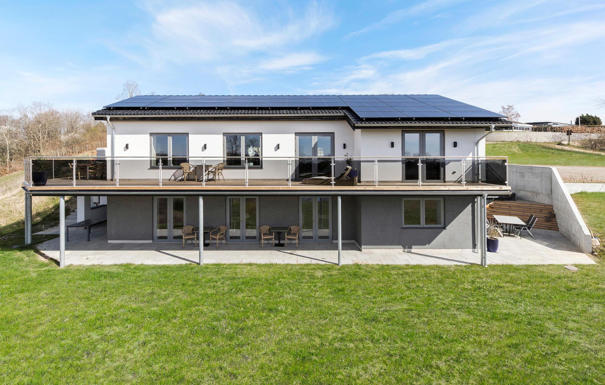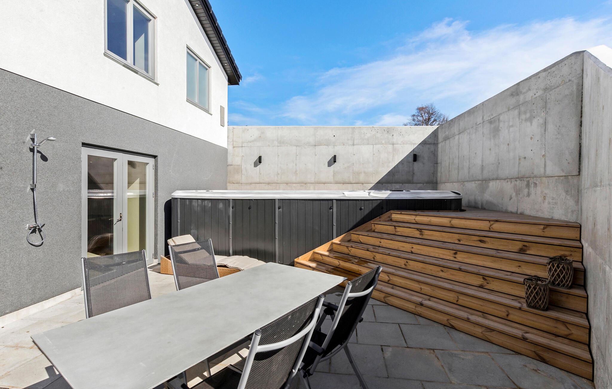 Tilbring tid på de store terrasser med forskellige siddeområder, enten overdækkede, solrige eller beskyttede. Brug spabadet, nyd udsigten eller nyd blot roen i omgivelserne. Den store have byder på masser af plads til at lege eller solbade.