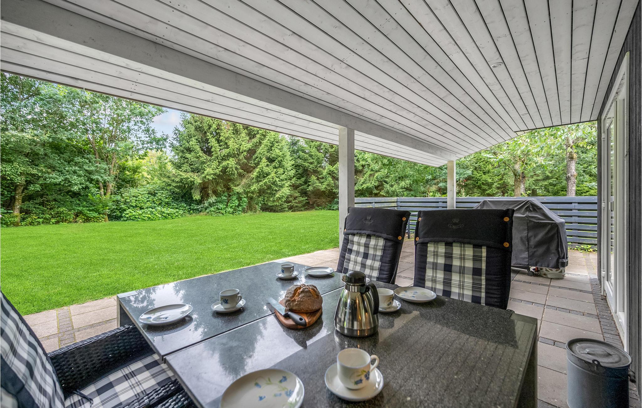 Huset ligger på stor grund med græsplæne, hvor børnene kan løbe og lege. I kan finde jer godt til rette på terrassen med havemøbler, mens I tilbereder noget lækkert på grillen.