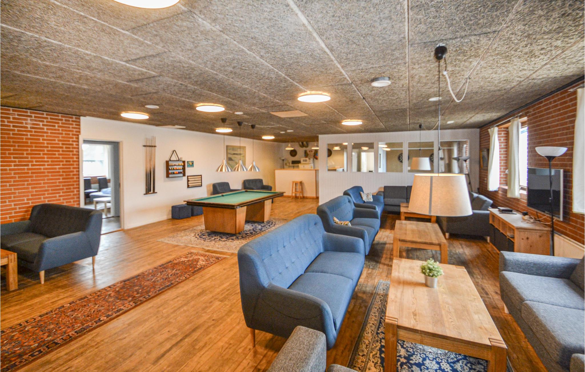 I kan boltre Jer i den store poolafdeling med den skønne swimmingpool og det 8-personers spabad. Saunaen findes i forbindelse med et af badeværelserne, der ligger i tilknytning til poolrummet. Hyg jer i den tilstødende relaxafdeling med en runde dart eller billard. Find jeres indre legebarn frem og brug den store aktivitetshal til at dyste i bordtennis, airhockey, indendørs hockey, fodbold eller noget helt andet. For de mindste er der et legerum med forskellige legesager, og dem der trænger til lidt ro, kan slappe af i den fredelige pejsestue.