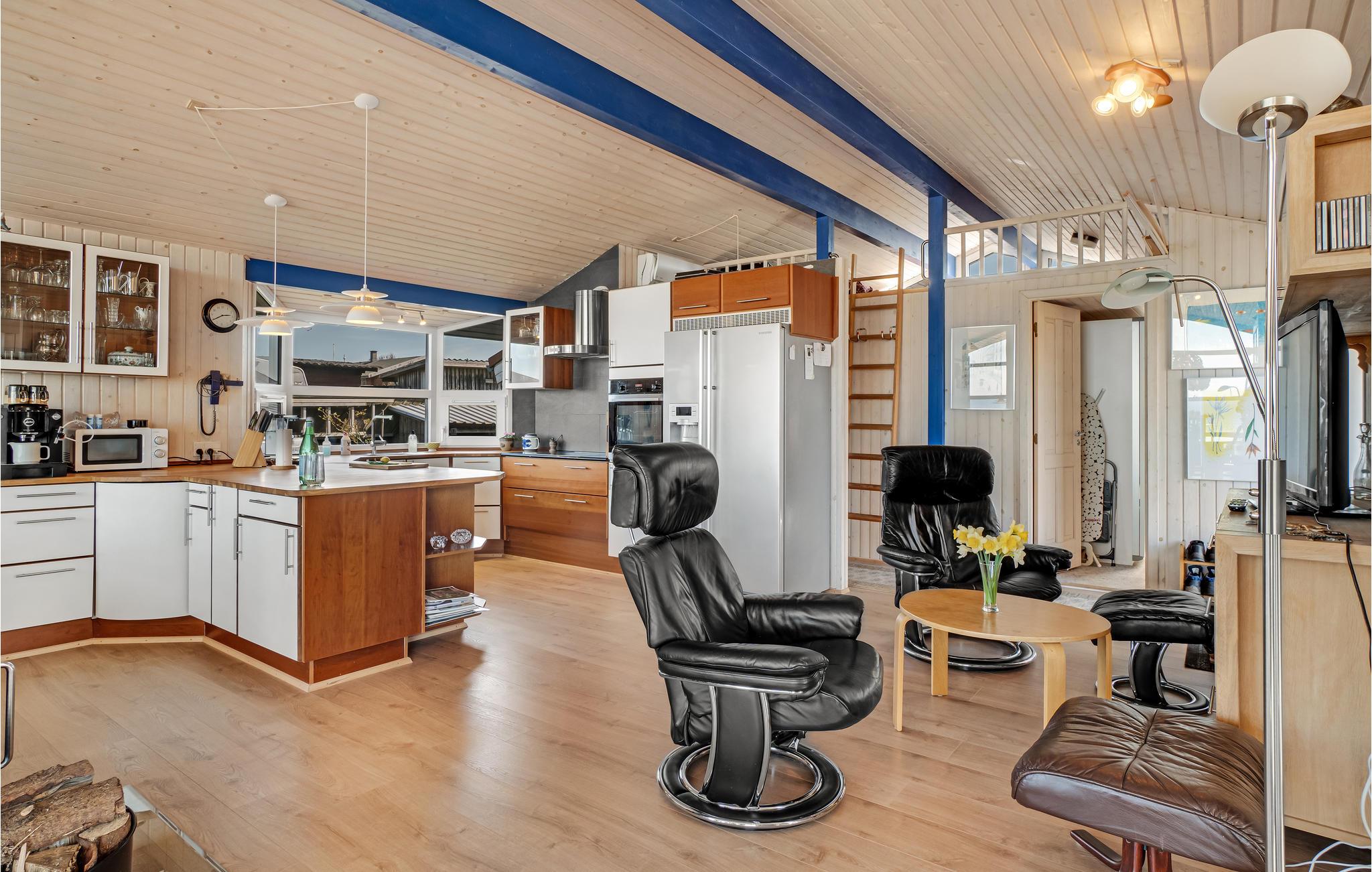 Glæd jer til jeres ferie i dette attraktive feriehus. På grund af de mange store vinduer vil I føle jer meget tæt på de smukke naturomgivelser. I kan nyde den smukke udsigt i stuen og lade blikket vandre ud over havet, mens I laver mad i køkkenet, leger ved spisebordet eller slapper af i sofaerne. Huset er veludstyret og tilbyder jer alt, hvad I har brug for til en ubekymret ferie. Hvorfor ikke nyde jeres morgenkaffe på terrassen ved huset eller i haven med en perfekt udsigt over stranden og havet? Sidst på aftenen kan I i den dejlige havestue planlægge morgendagens aktiviteter.