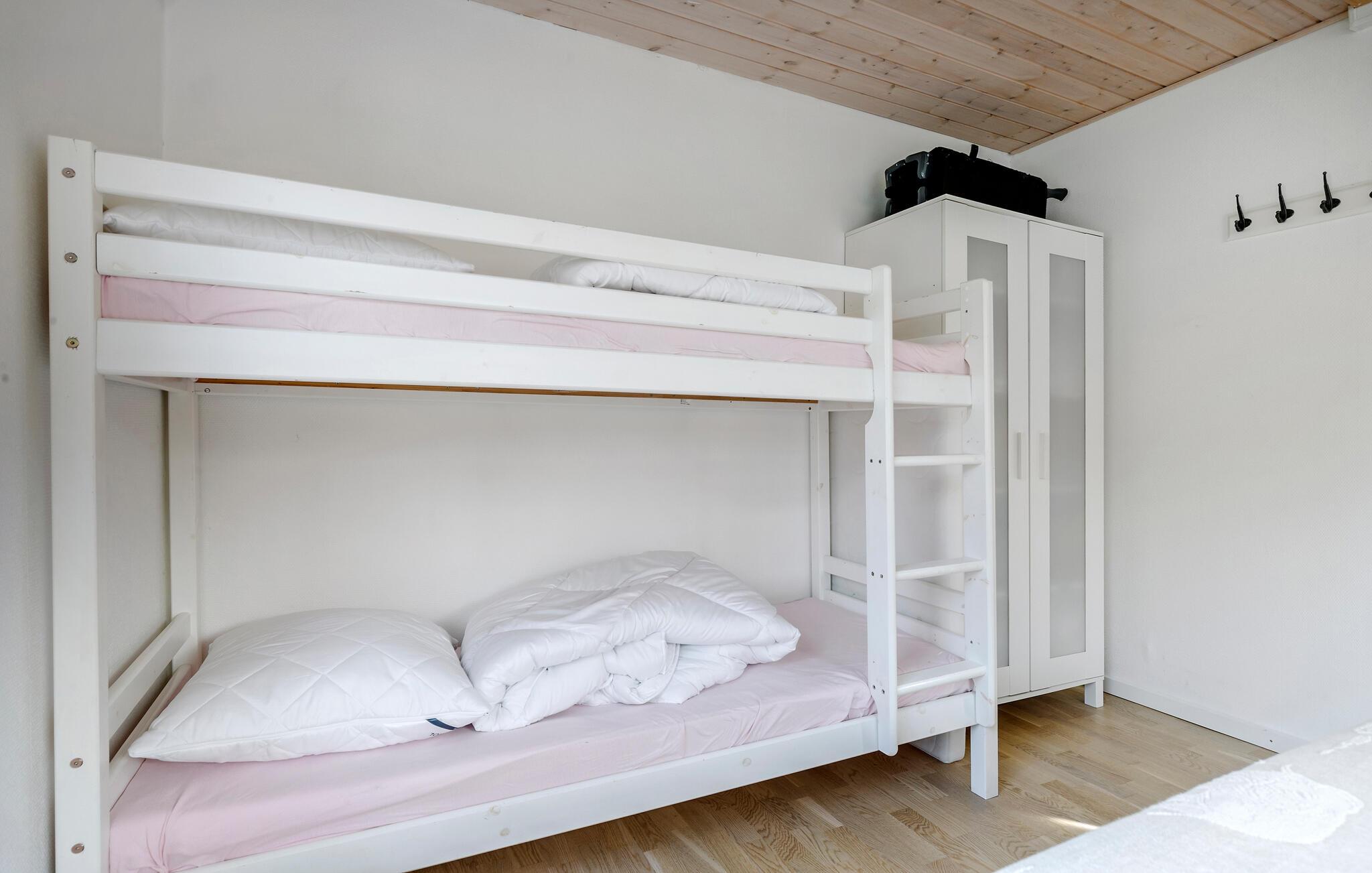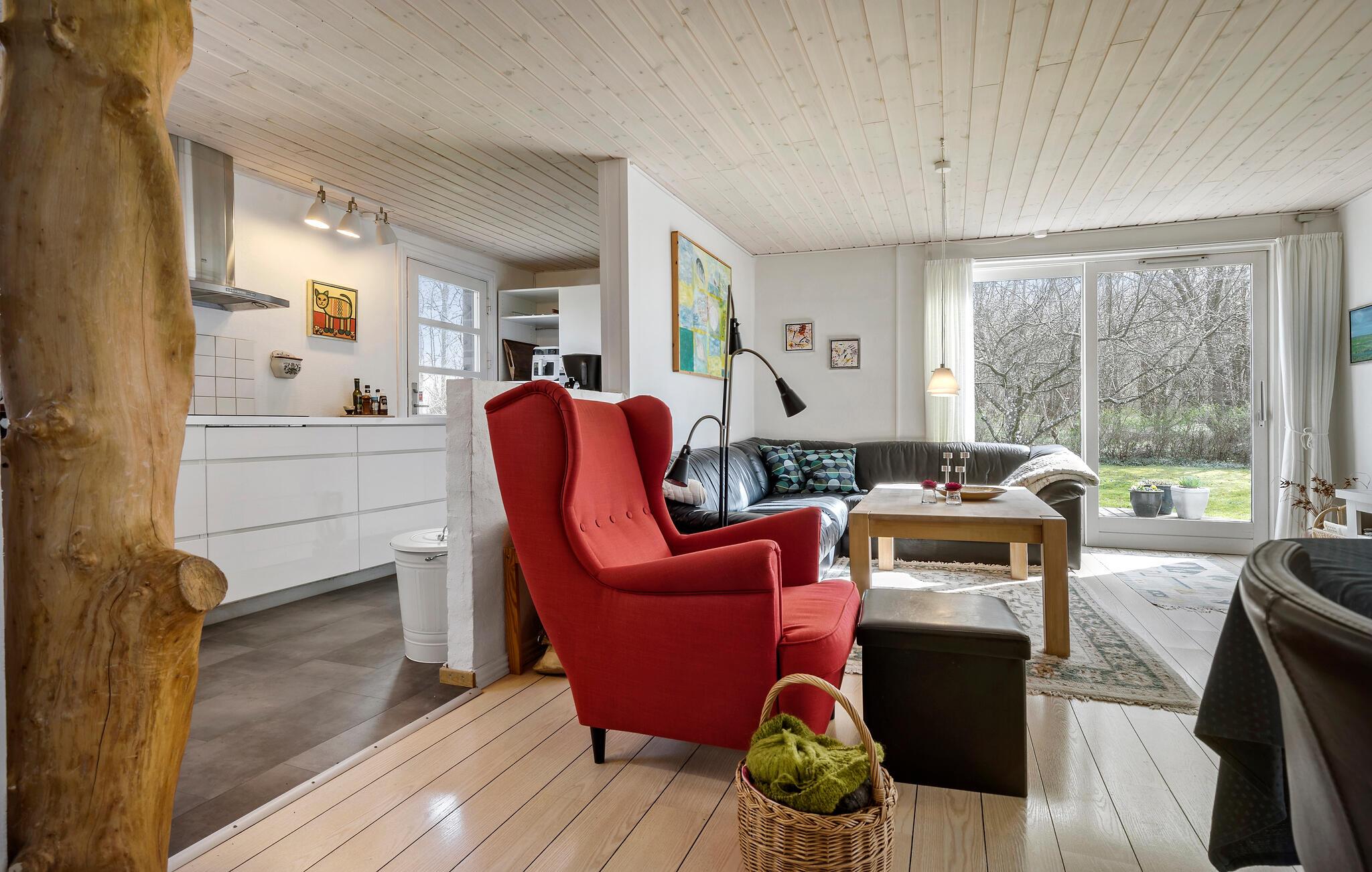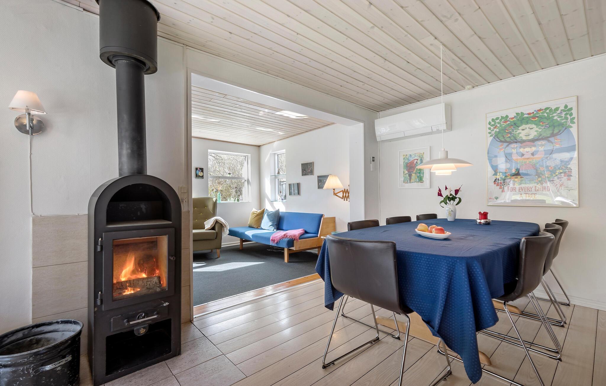 Der er lagt op til nogle hyggelige feriedage i dette charmerende sommerhus, som giver en herlig ramme om hyggestunderne. Her kan alle have det rart og give sig god tid til alenesysler og fælles aktiviteter. Begynd dagene med en friskbrygget kop kaffe og dæk op til morgenmaden i den lyse opholdsstue. På en kølig dag er det ekstra stemningsfuldt med ild i brændeovnen, mens I hver især er fordybet i en god bog, ser en film eller spiller brætspil.