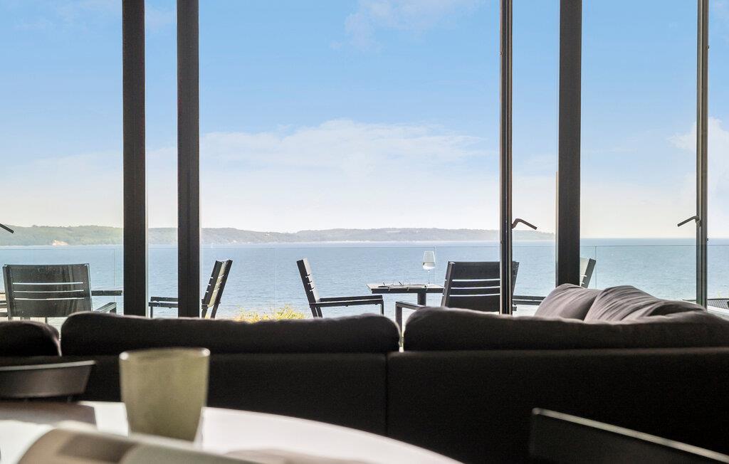 Fra både sommerhusets terrasse og det store vildmarksbad kan I nyde havudsigten, hvad mere kan I ønske jer? Det skulle da lige være et luksuriøst sommerhus, hvor der ikke er gået på kompromis med materialevalg og indretning. Huset er moderne indrettet med stilsikre og flotte valg af møbler, der både giver lethed i de ikke så store rum og samtidig sommerhushygge. På øverste etage findes to gode soveværelser med komfortable senge, gæstetoilet med håndvask og stuen med panoramaudsigt over indsejlingen til Vejle Fjord samt det elegante, veludstyrede køkken.