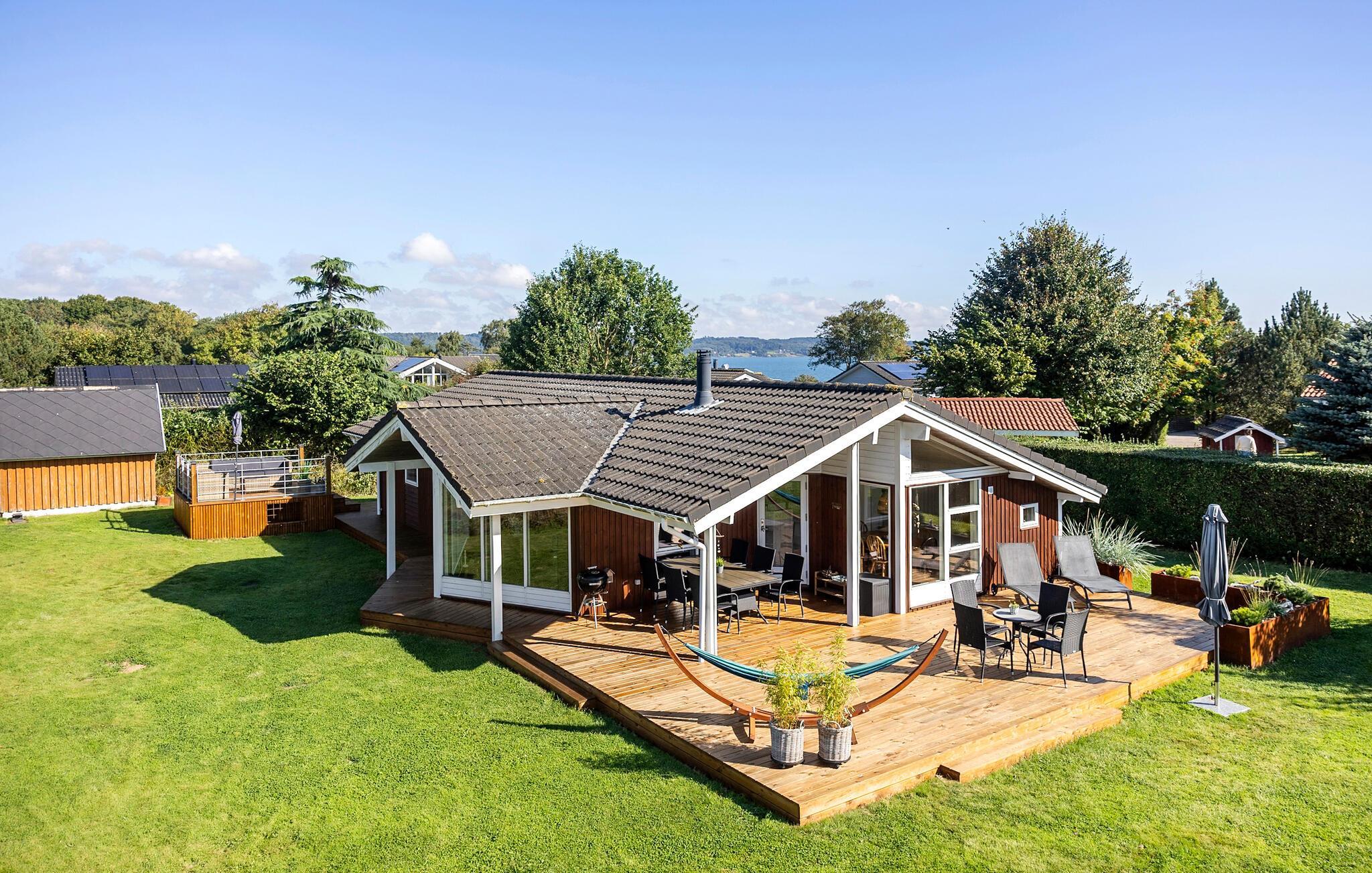 I et attraktivt feriehusområde nær Vejle og Fredericia ligger dette skønne kvalitetshus. Det flotte hus er udstyret med mange faciliteter til en komfortabel ferie, så her kan I virkelig lade batterierne op. Nyd en rolig stund i husets spabad efter en lang dag på farten eller sæt jer ind i saunaen og få varmen efter en frisk gåtur ved vandet. Vil I skrue ekstra op for hyggen på en kølig dag, kan I også tænde op i brændeovnen.
