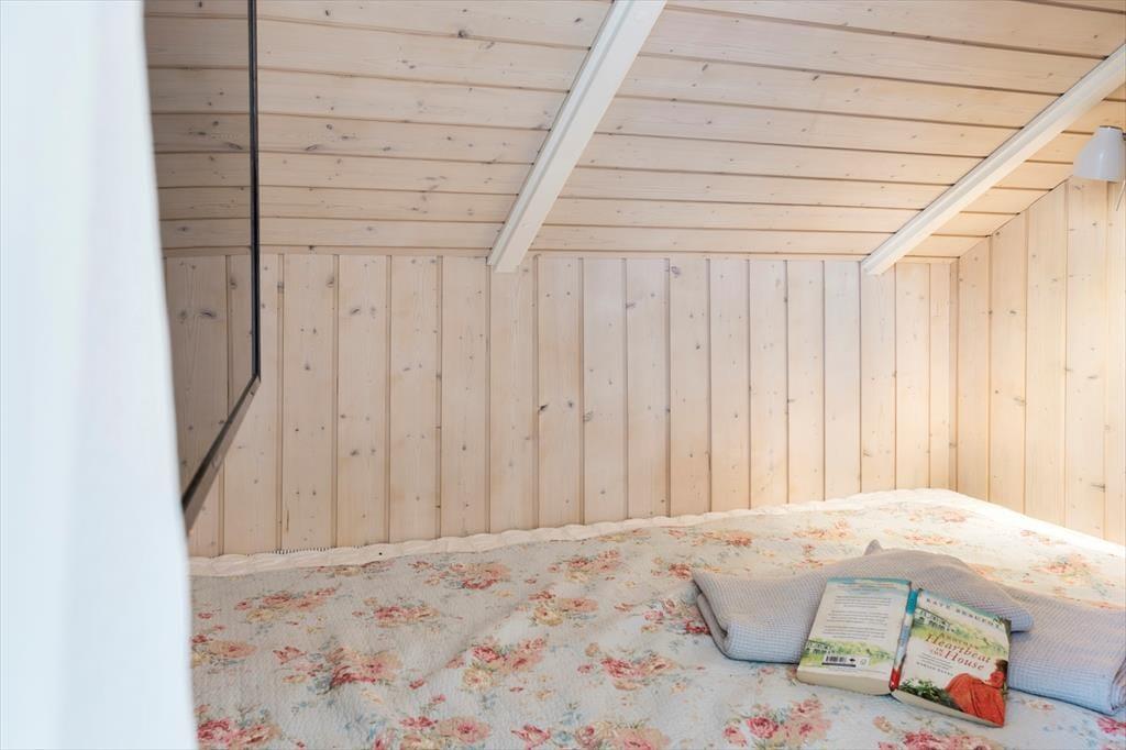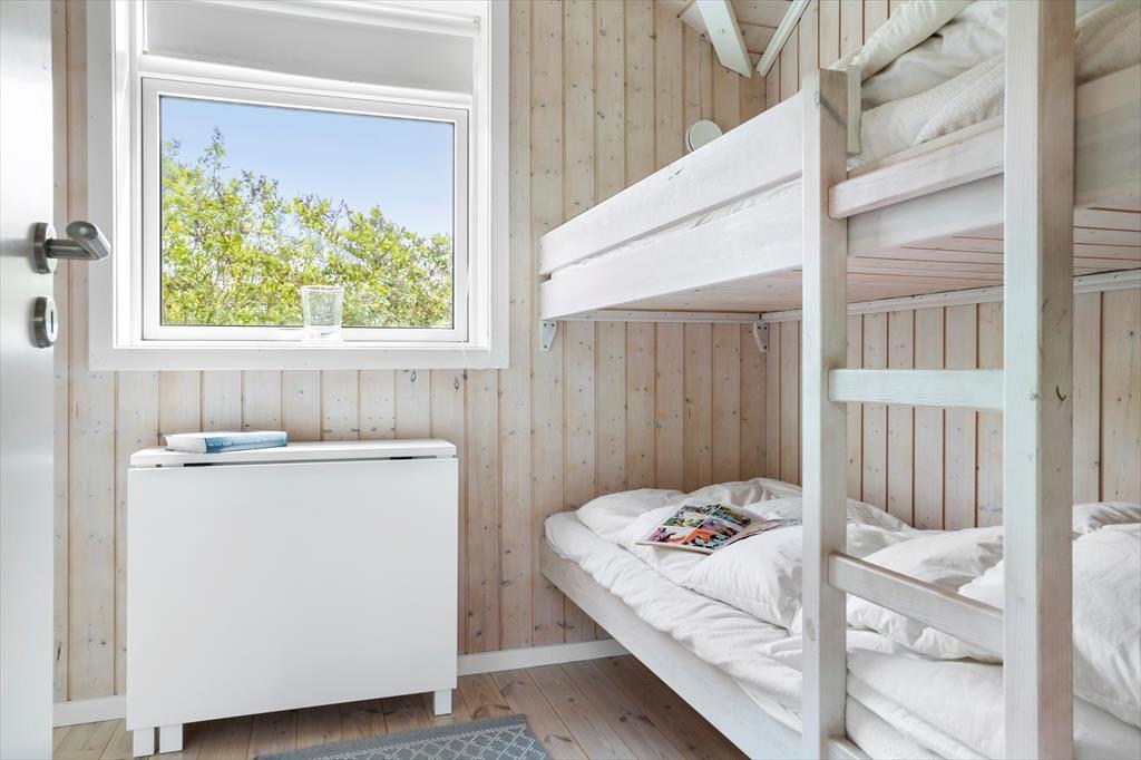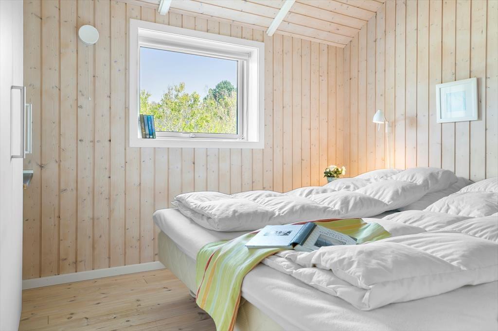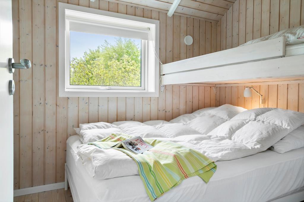I sommerhuset er i alt tre soveværelser: Et soveværelse med en dobbeltseng, et værelse med dobbeltseng og en køje, samt et værelse med køjeseng. I kan dermed fordele jer i huset, som det passer bedst efter jeres ønsker. Alle værelser er lyse og med god skabsplads. Huset er gennemført med lyse trælofter og vægge, der er med til at skabe en dejlig og hyggelig sommerhusstemning.