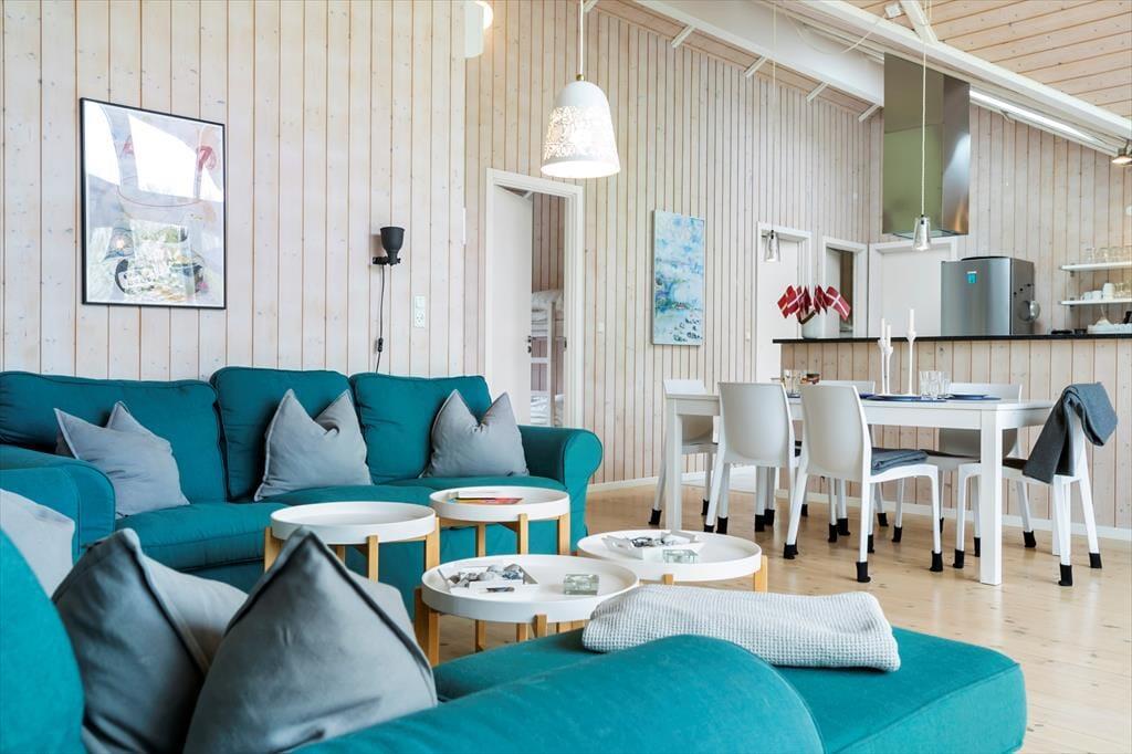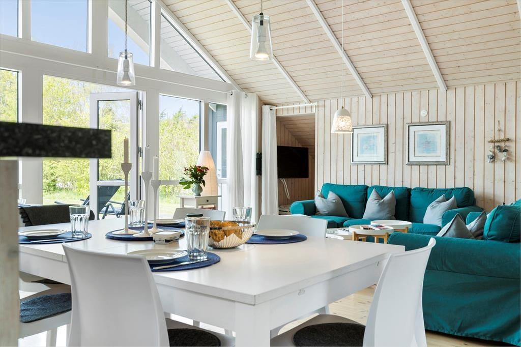 Sommerhuset er et flot, funktionelt og arkitekttegnet hus, så der er tænkt på alle detaljer og samtidig er hyggen helt i top. Stuen er husets samlingsrum, der er i åben forbindelse med spisebordspladsen og køkkenet. I stuen er en brændeovn ved sofamøblerne, så når du tænder op i brændeovnen og slapper af med en bog eller gode snakke, bliver det ikke meget bedre. Har man brug for at trække sig lidt og slappe af, eller måske se en god film, er der i stuen en aflukket alkove, hvor det er hyggeligt at ligge og få ekstra fred og ro.