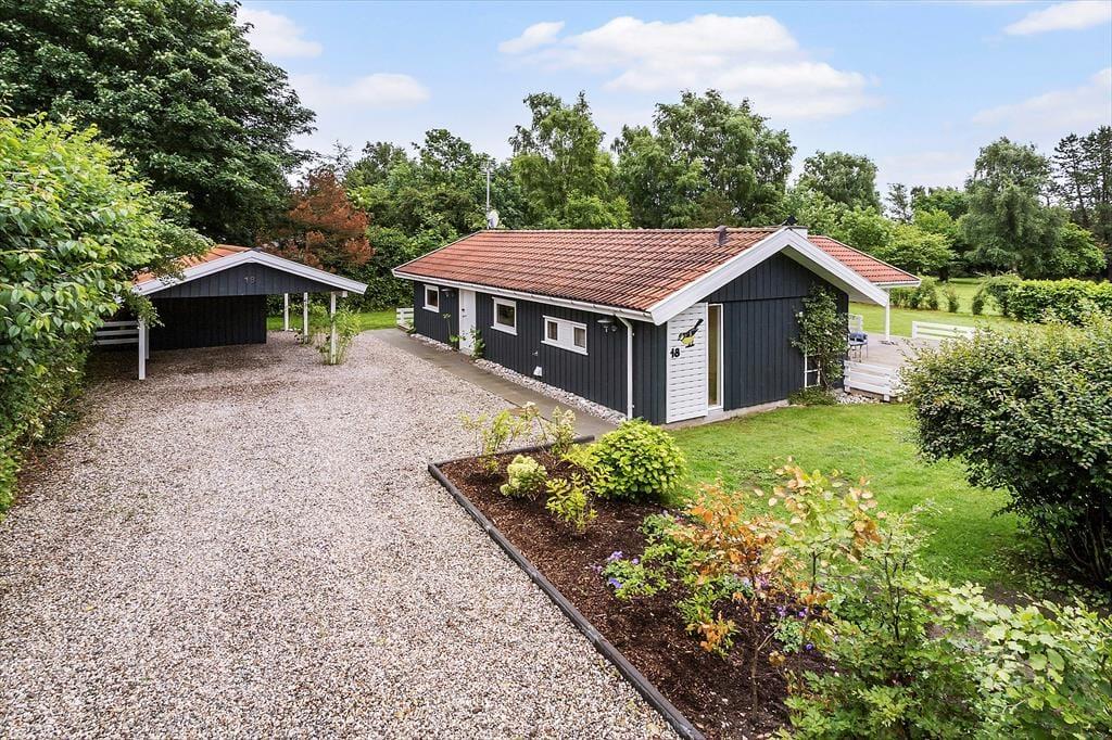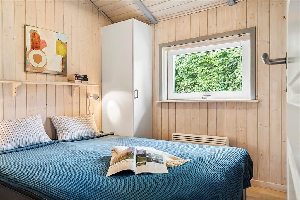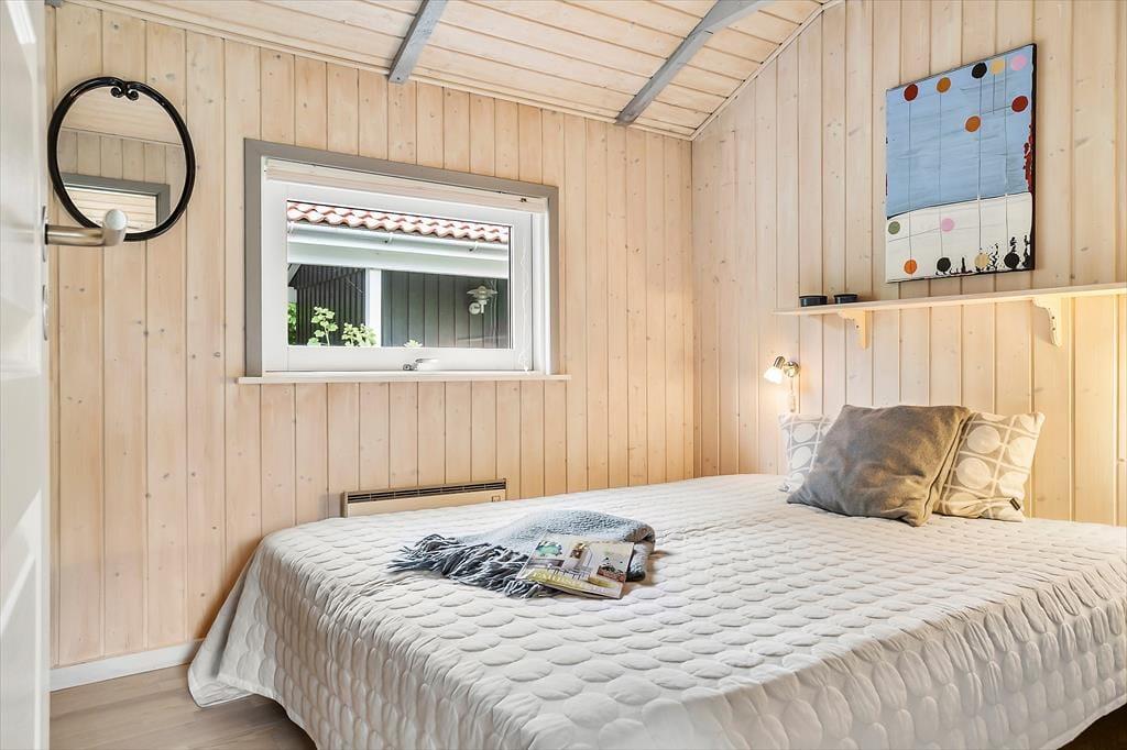 Gennemgående i sommerhuset er de lyse trævægge og lofter, der skaber en hyggelig og indbydende stemning, som du mærker med det samme. Samtidig er en blandt andet den lille entre med til at gøre huset praktisk, og der er tænkt på alle detaljer, så du er sikret en god sommerhusferie her.