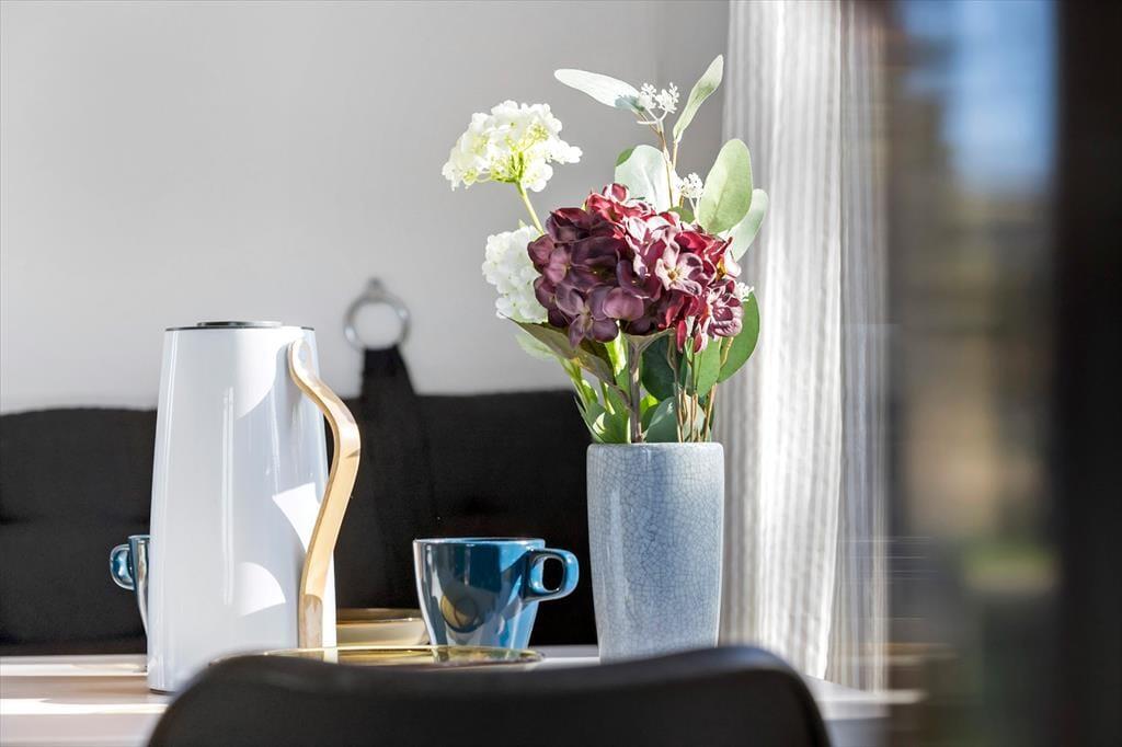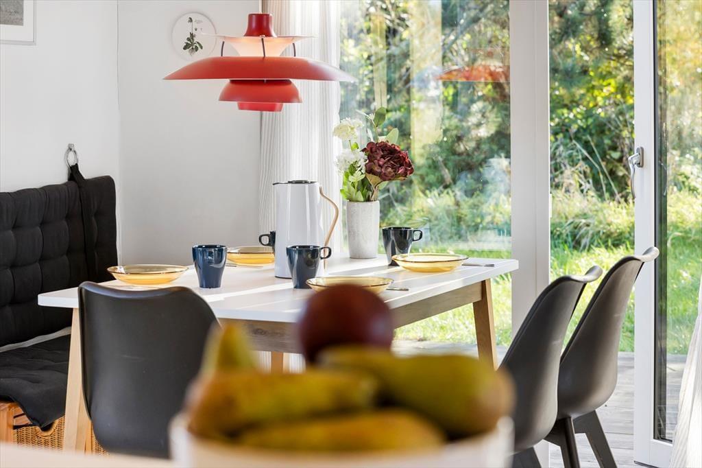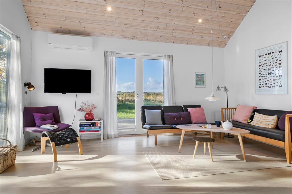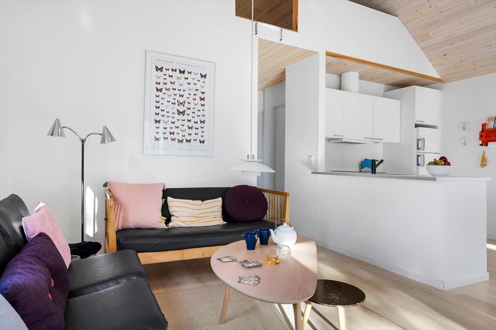 Mellem spiseområdet og sofahjørnet finder I en brændeovn, som skaber ekstra varme og hygge på de kølige aftener. I kan også slå jer ned i sofahjørnet og nyde en god film på fjernsynet. Rummet er fyldt med lys og har en behagelig atmosfære – det perfekte sted for jer at være sammen.
