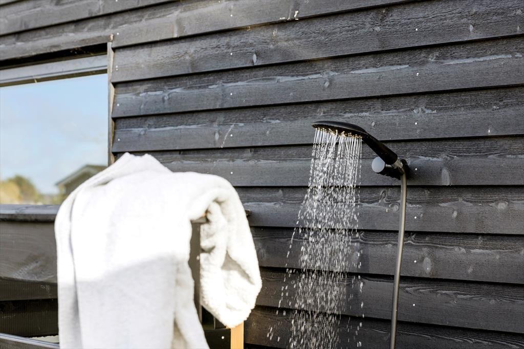 Den store træterrasse rundt om huset gør det muligt at følge solen fra morgen til aften. Efter en tur til stranden kan I skylle jer i udendørsbruseren og derefter slå jer ned på den vestvendte terrasse, der har direkte adgang fra stuen. Her kan I nyde måltider under åben himmel eller slappe af i liggestole. Ved indgangen finder I endnu en terrasse, som er ideel til morgenkaffen og stille morgener.