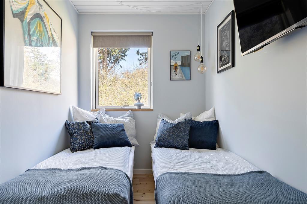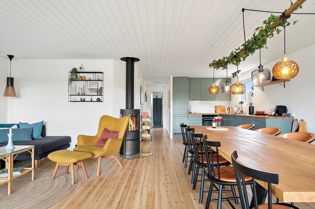 Sommerhuset byder på en varm og indbydende atmosfære med plads til 6 voksne fordelt på 3 gode soverum. Indretningen er hyggelig og funktionel med lyse rum og komfortable møbler, der indbyder til ren afslapning. I stuen finder I TV med Chromecast – perfekt til en filmaften efter en dag med strand og oplevelser. Køkkenet er veludstyret, og både vaskemaskine og tørretumbler gør det nemt at holde ferien praktisk. Varmepumpen sørger for behagelig temperatur året rundt, og det moderne badeværelse fuldender komforten.