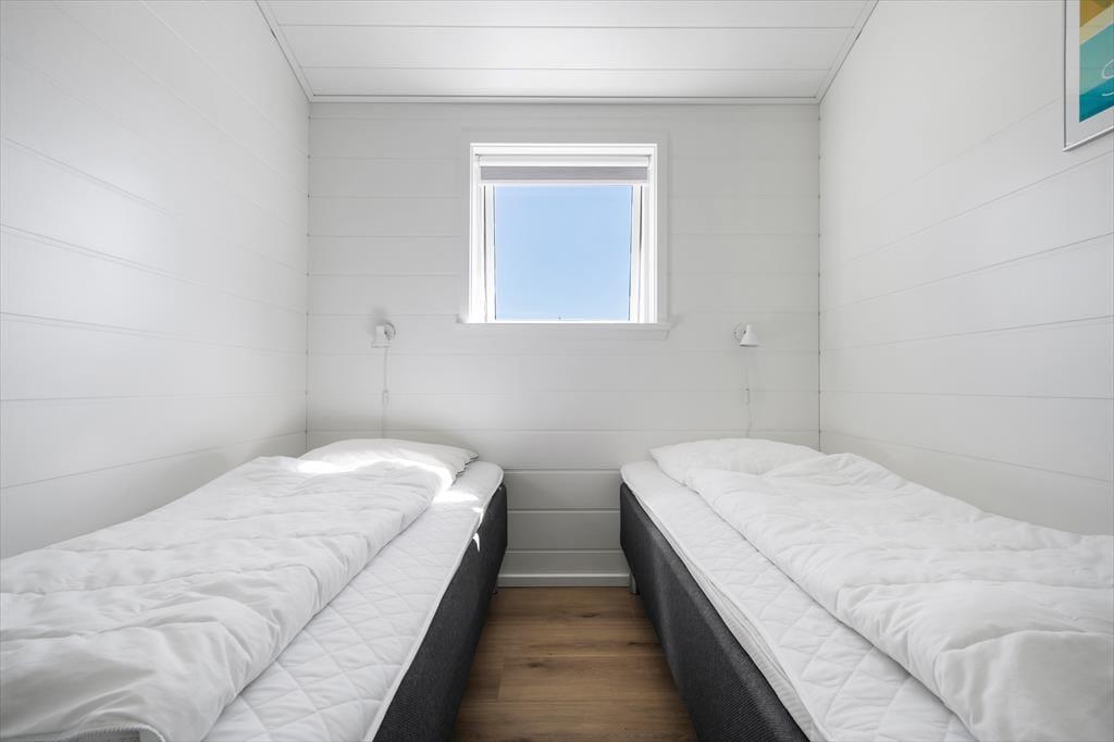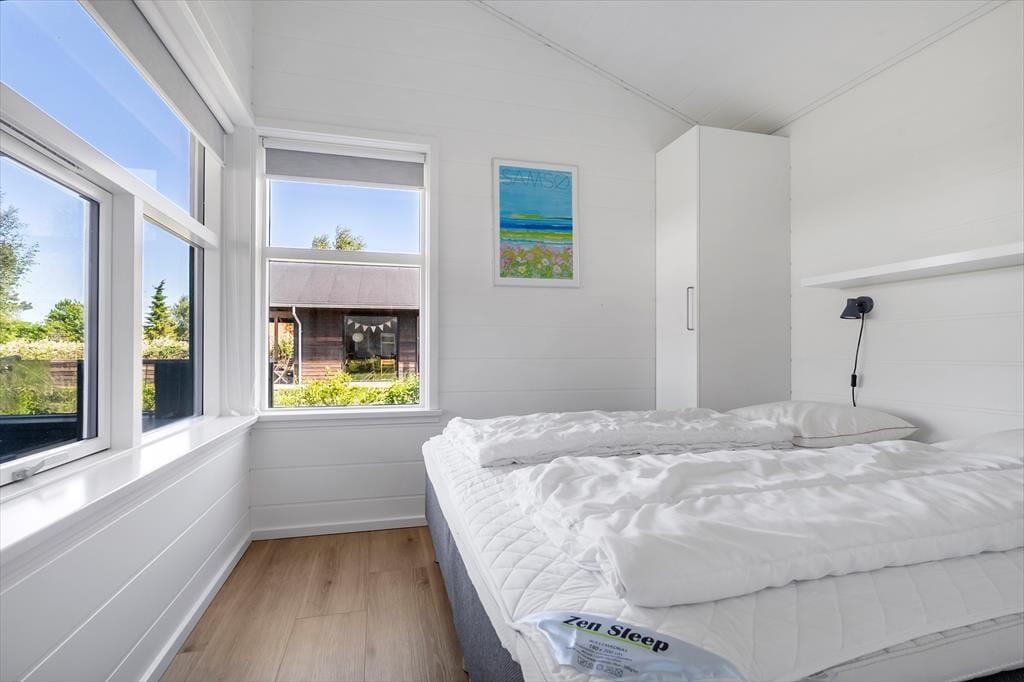 Sommerhuset har tre gode soveværelser med dobbeltsenge samt et værelse med to enkeltsenge. Derudover et dejligt anneks med dobbeltseng, alle værelser har opbevaringsplads.