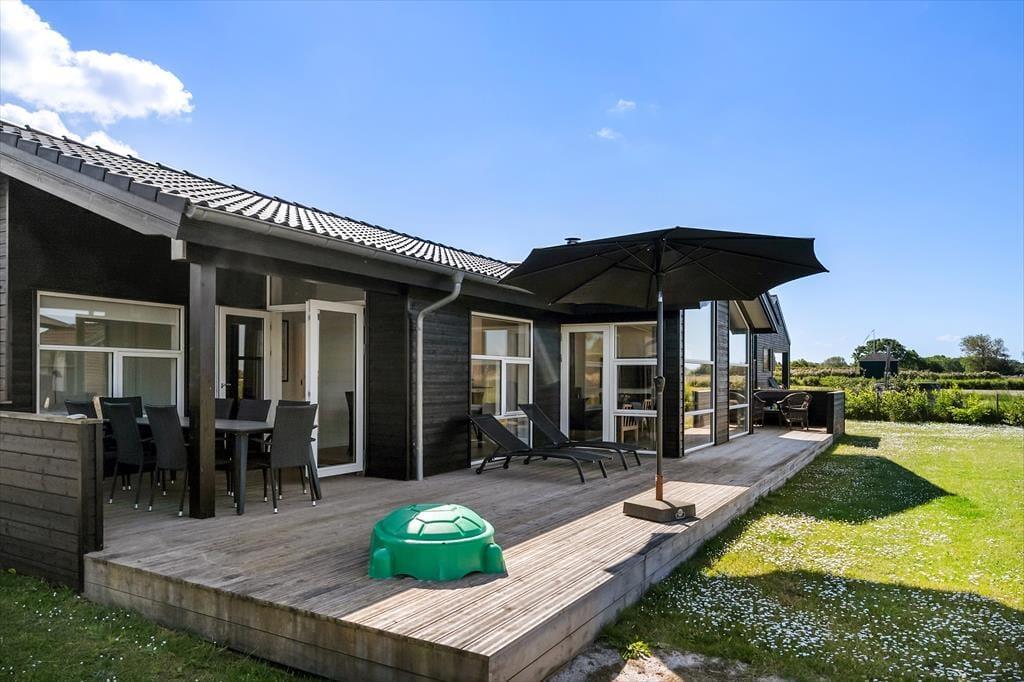 De store træterrasser rundt om huset giver jer mulighed for at følge solen fra morgen til aften. Her kan I spise udendørs, læne jer tilbage i liggestole eller bare nyde naturen. Ved indgangen finder I endnu en terrasse, som er ideel til morgenkaffen og stille morgener.