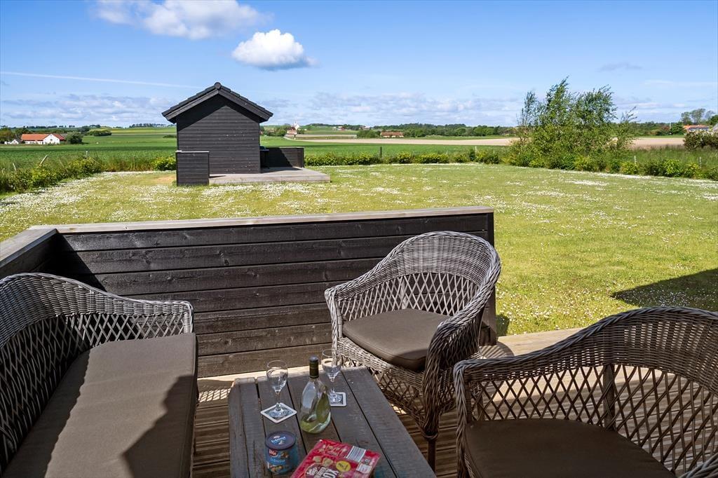 Sommerhuset ligger på en skøn grund med udsigt over det smukke landskab, hvor I kan nyde roen og freden. Haven byder på god plads til både leg og afslapning, og de to terrasser gør det muligt at nyde solen hele dagen.