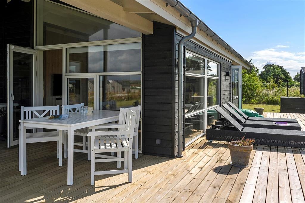 De store træterrasser giver jer mulighed for at følge solen fra morgen til aften. Her kan I spise udendørs, læne jer tilbage i liggestole eller bare nyde naturen.